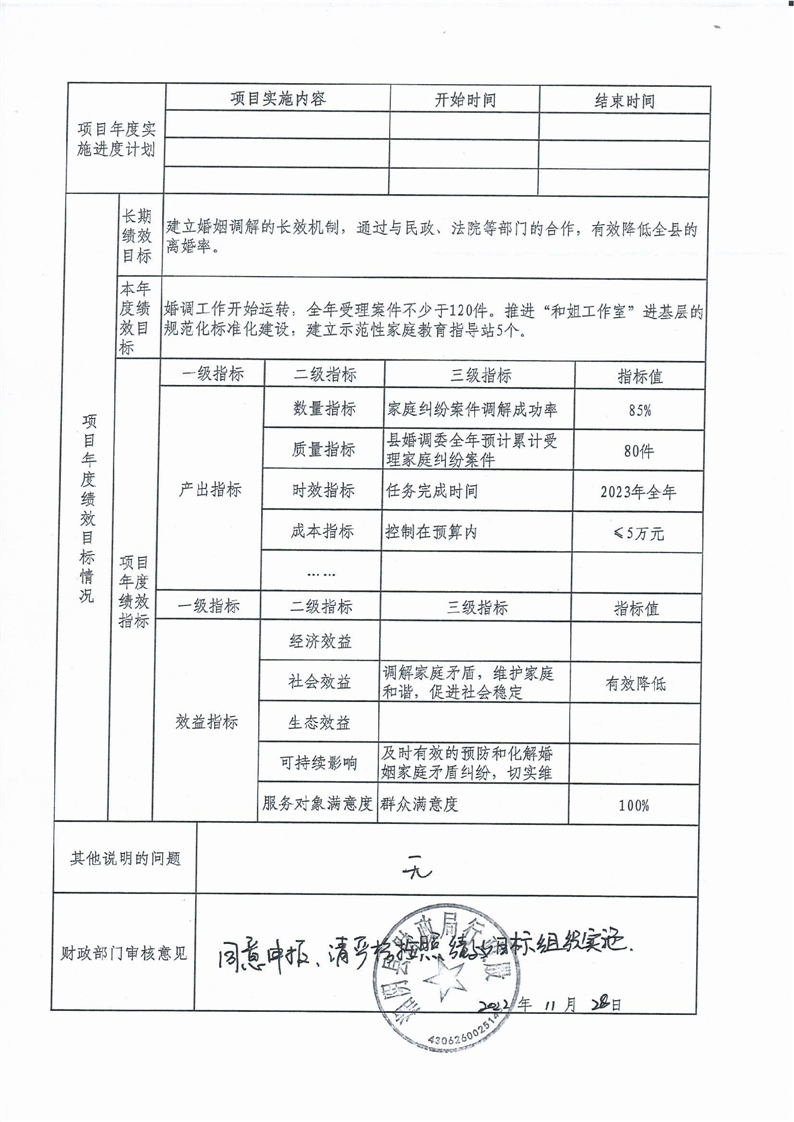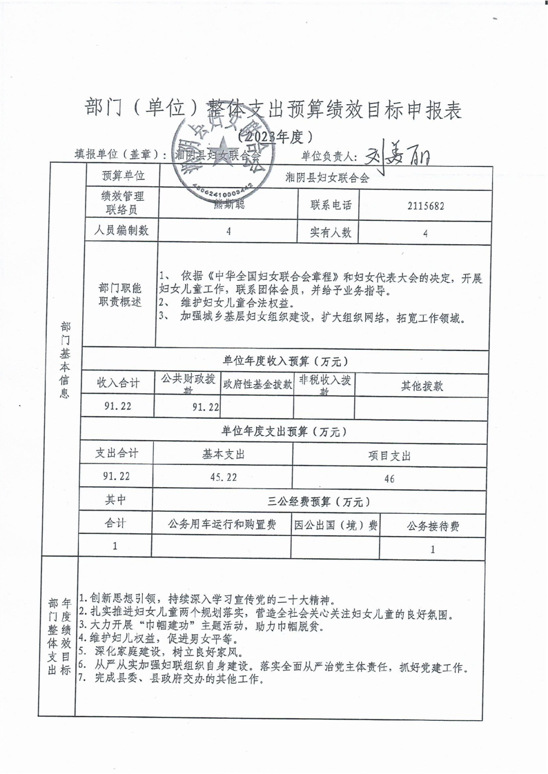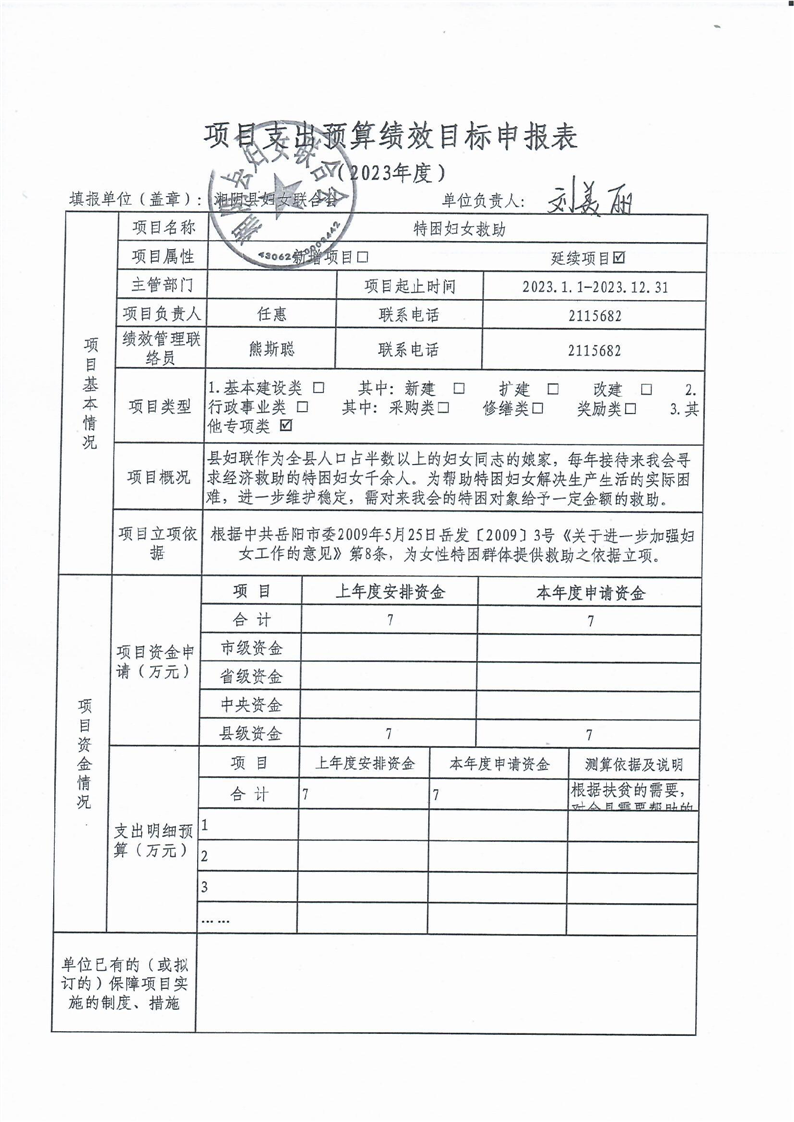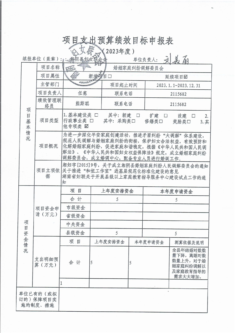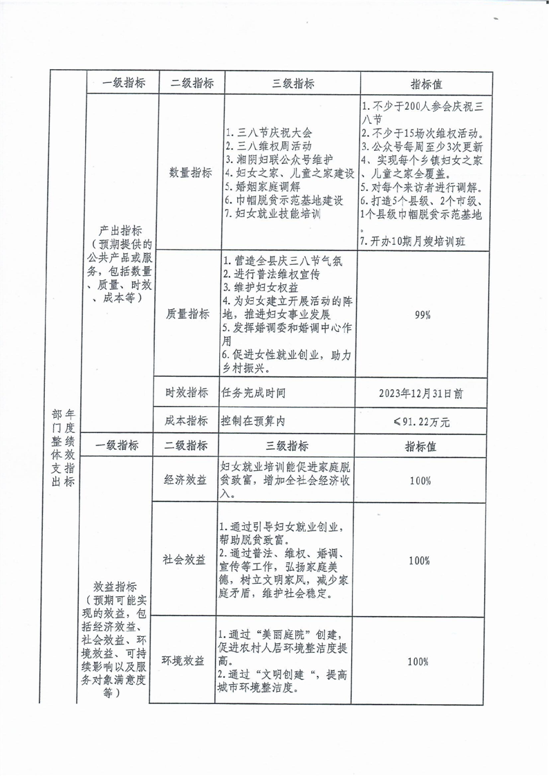 2023年度湘阴县妇女联合会项目支出预算绩效目标申报表