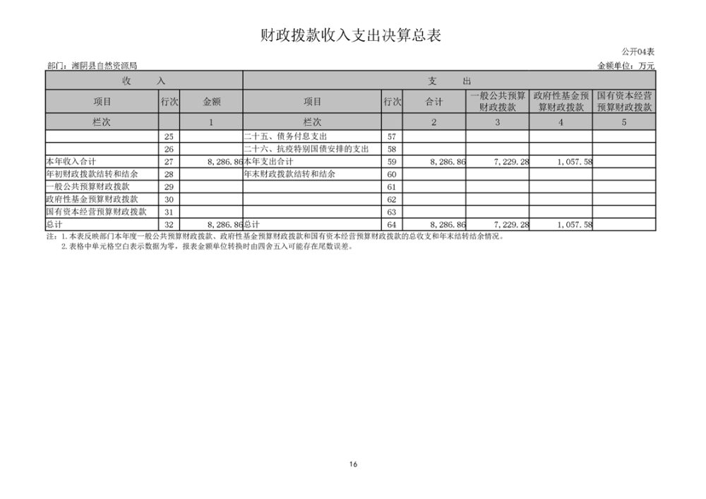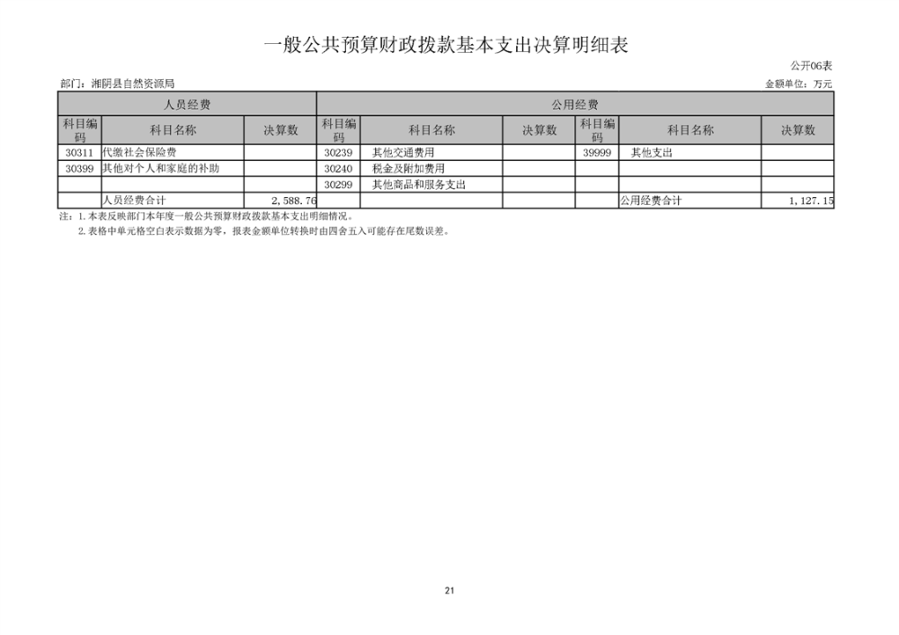 湘阴县自然资源局2023年度部门决算公开
