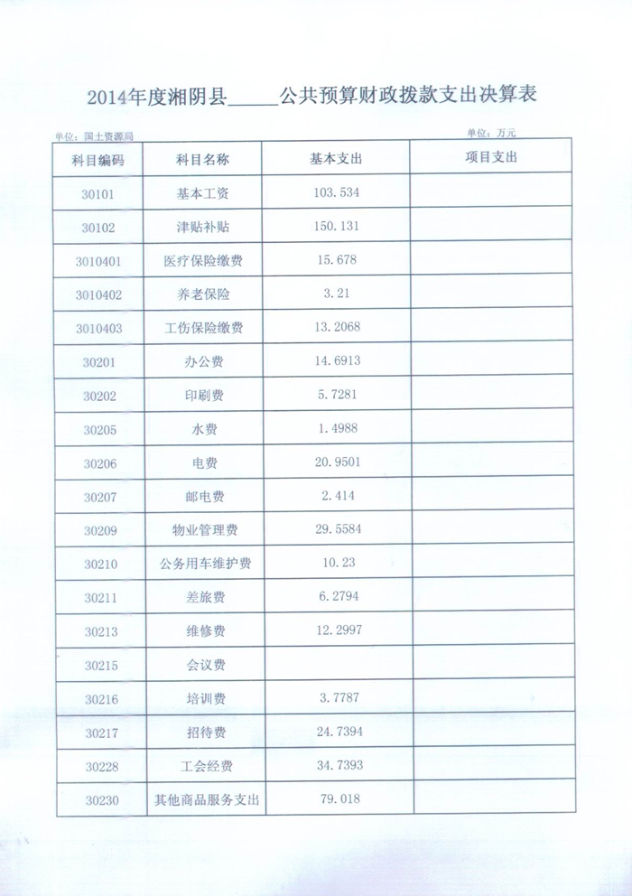 2014年度湘阴县国土资源局公共预算财政拨款支出决算表