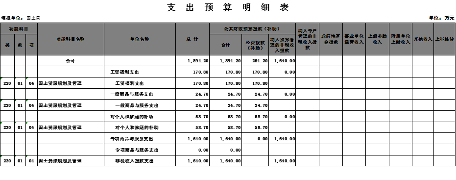 2015年国土局收支预算