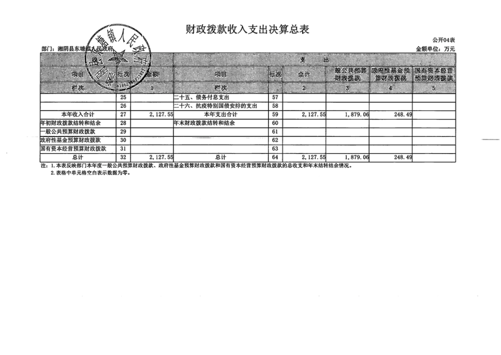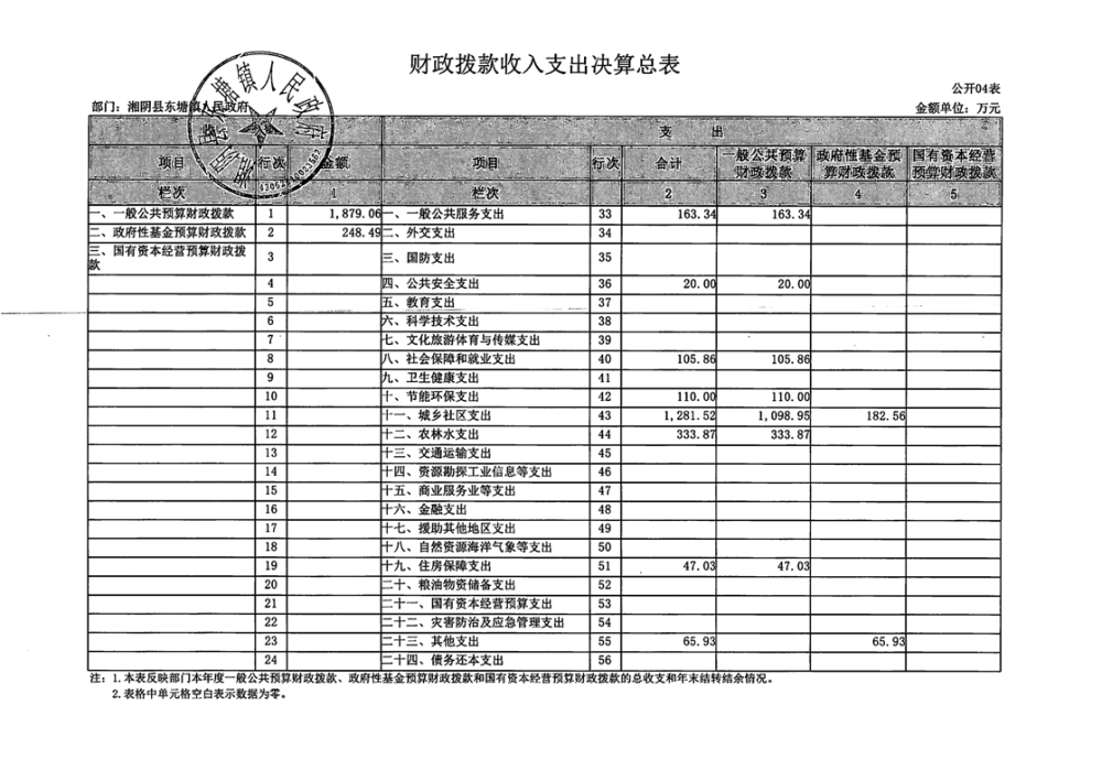 2024年度-湘阴县东塘镇人民政府-部门决算