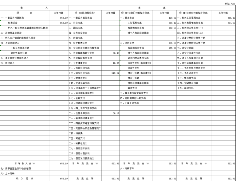 十、对个人和家庭的补助支出预算表 无 十一、对个人和家庭的补助支出预算表(按政府预算) 无 十二、财政拨款收支总表