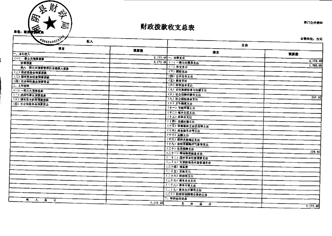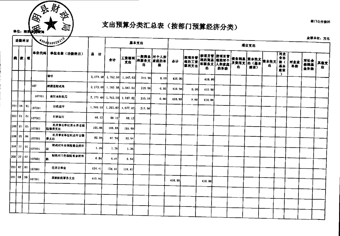 湘阴县财政局-2023年度部门预算公开