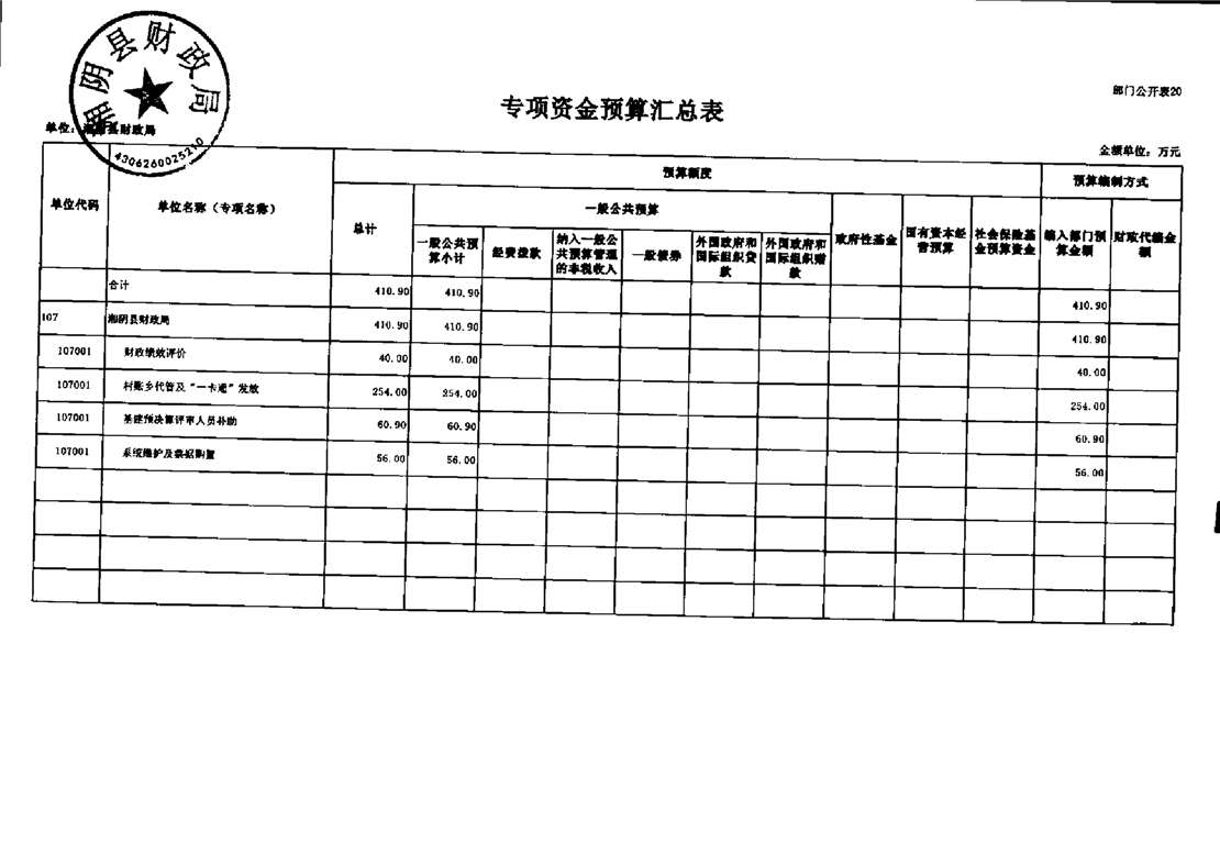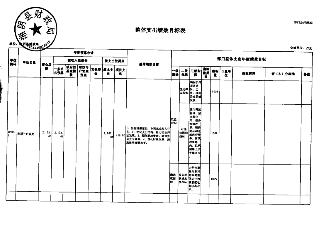 | 公开主体 | 湘阴县财政局 | ||