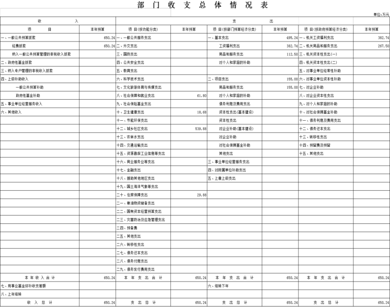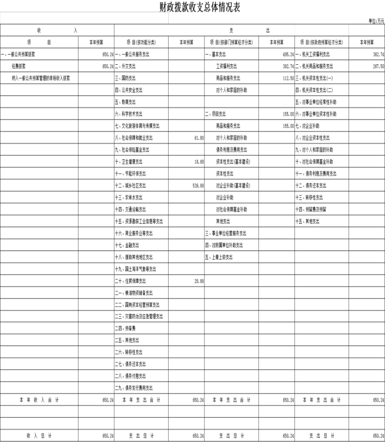 十、对个人和家庭的补助支出预算表(按部门预算经济分类) 无 十一、对个人和家庭的补助支出预算表(按政府预算经济分类) 无 十二、财政拨款收支总表