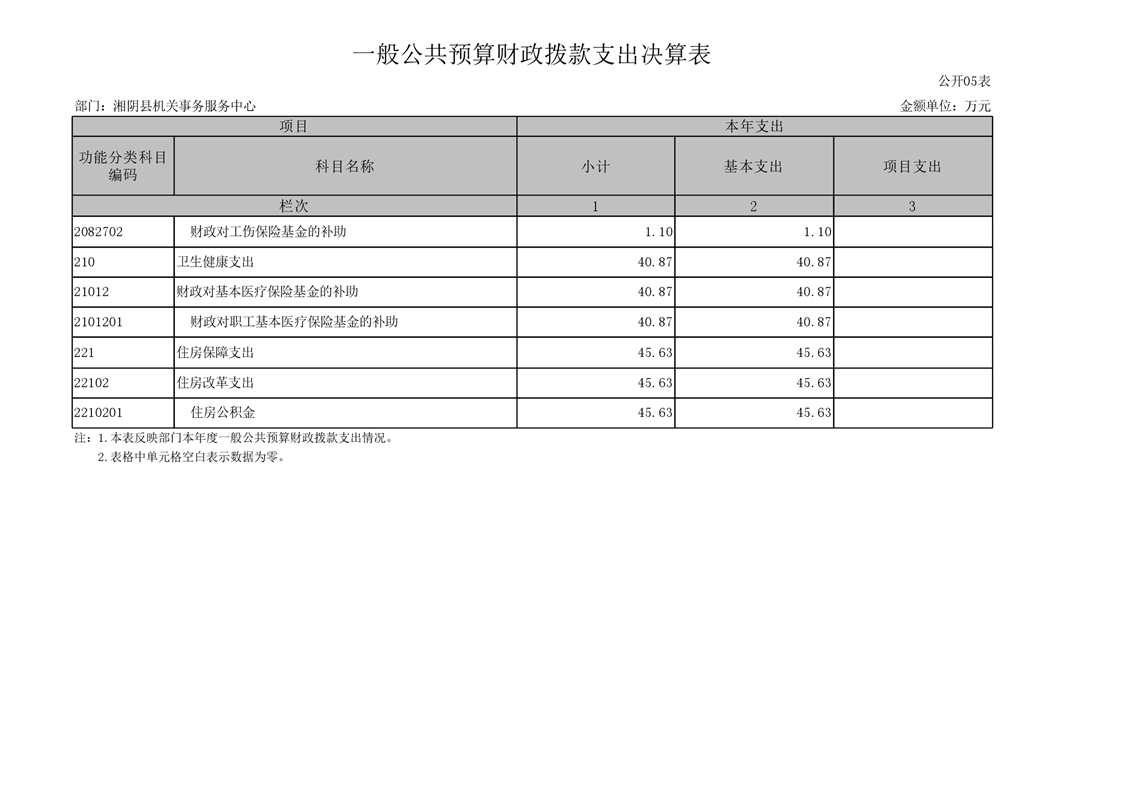 湘阴县机关事务服务中心2021年决算