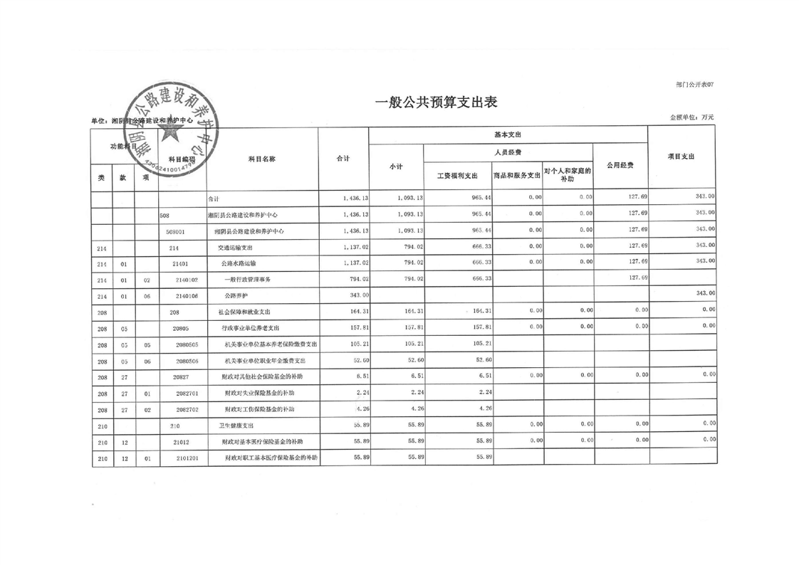 湘阴县公路建设和养护中心-2023年度-部门预算公开