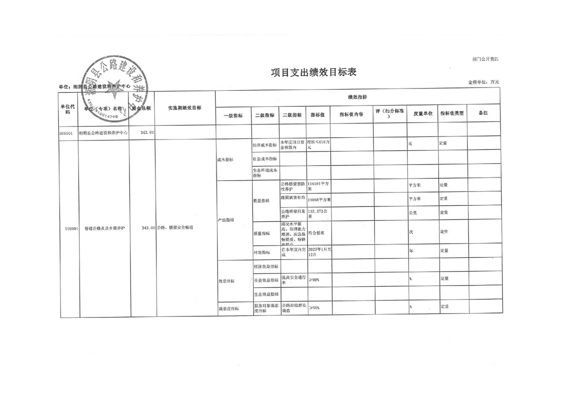 | 公开主体 | 湘阴县公路建设和养护中心 | ||