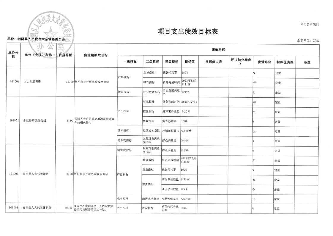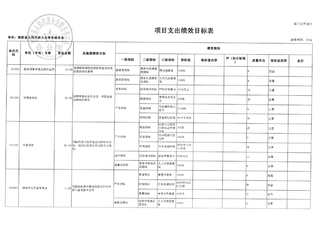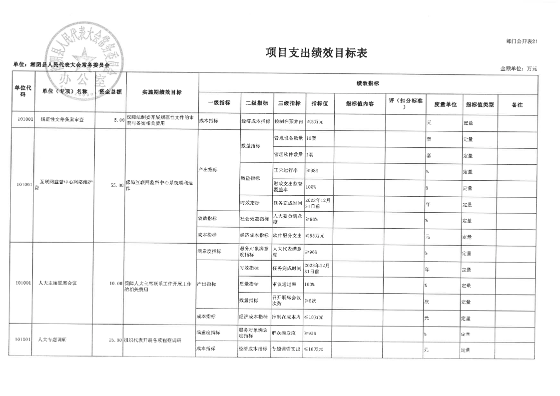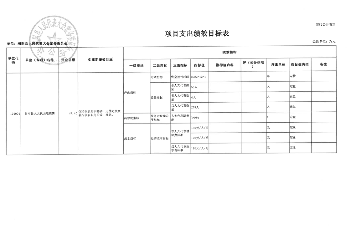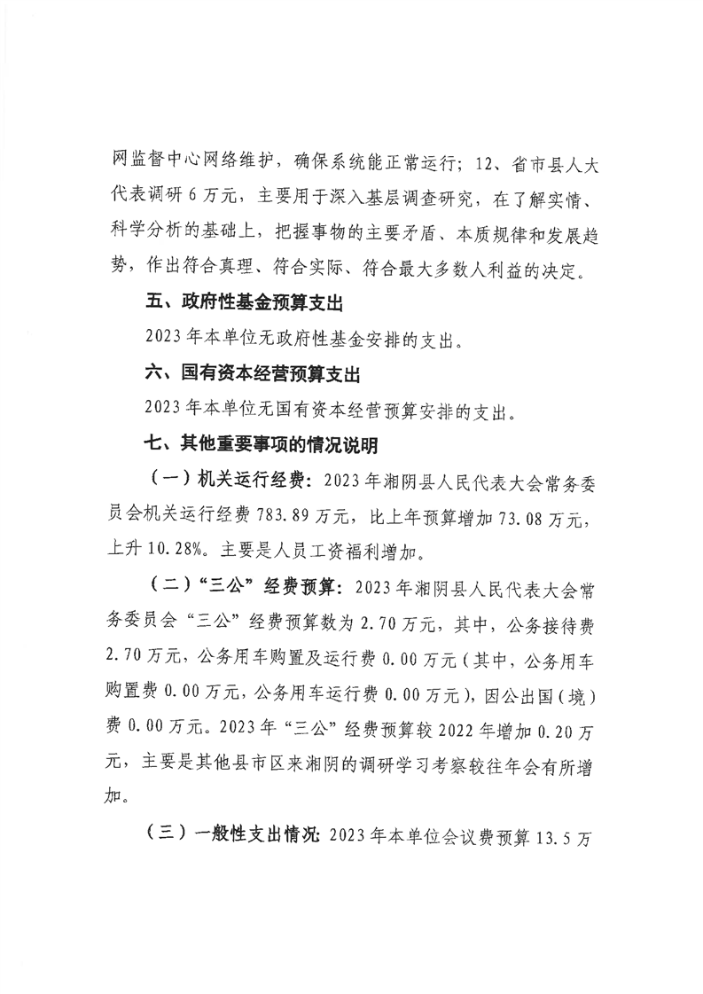 湘阴县人民代表大会常务委员会-2023年度-部门预算公开