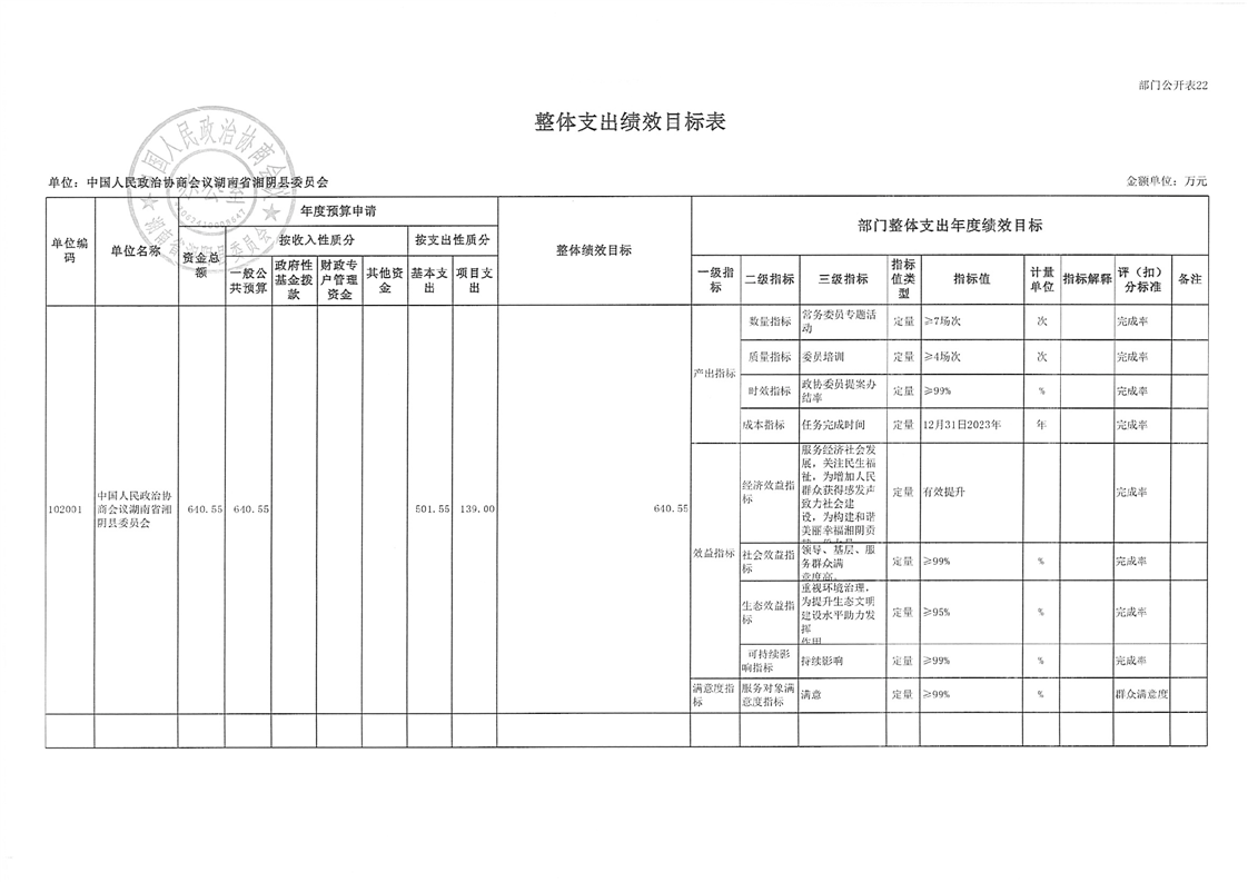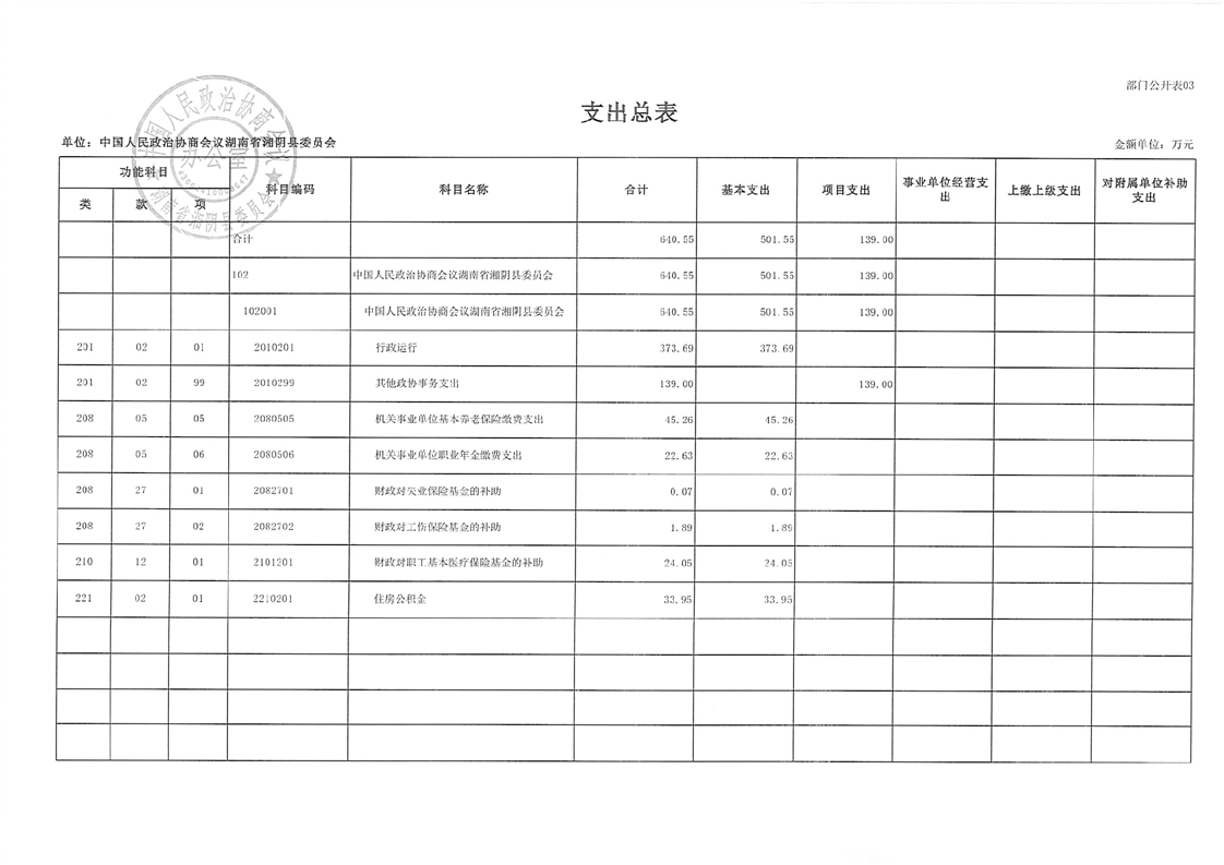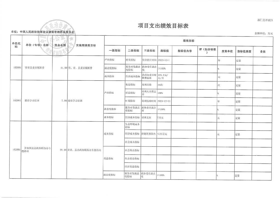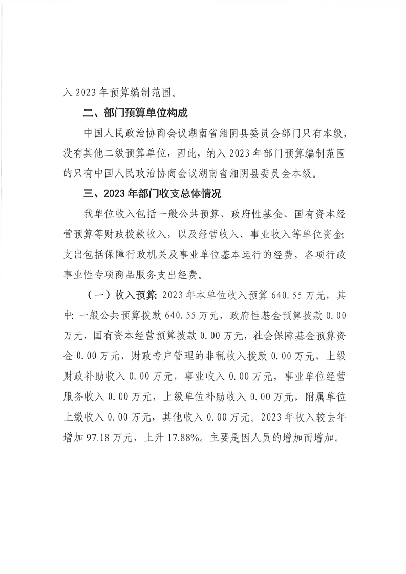 中国人民政治协商会议湖南省湘阴县委员会—2023年度—部门预算公开