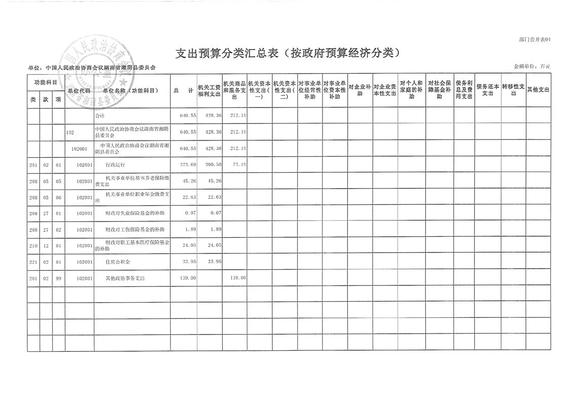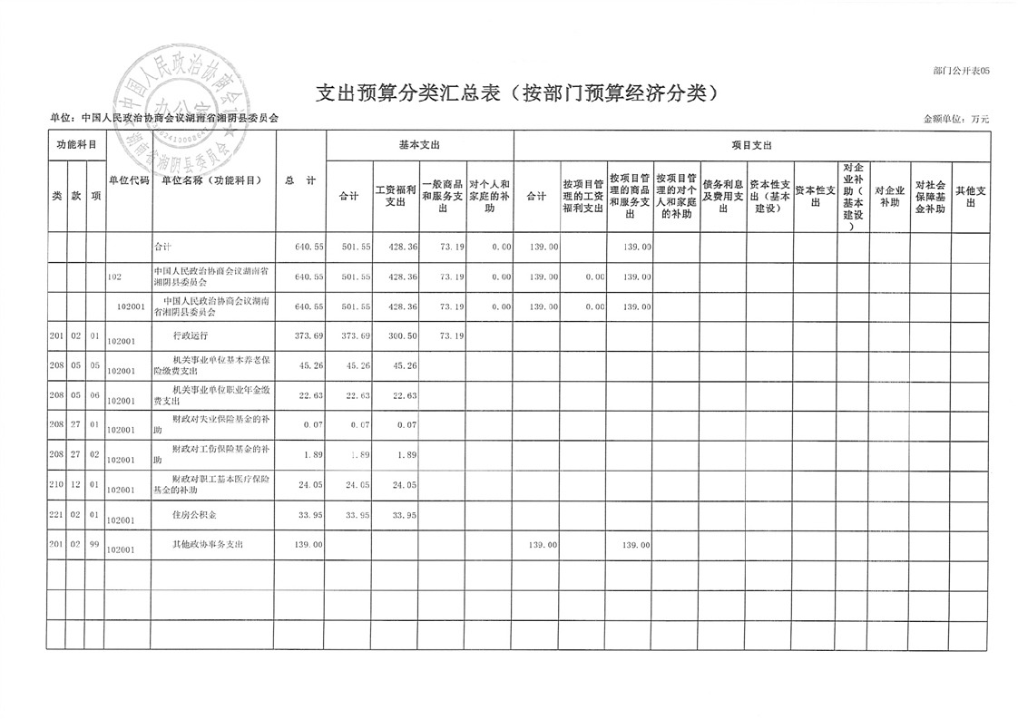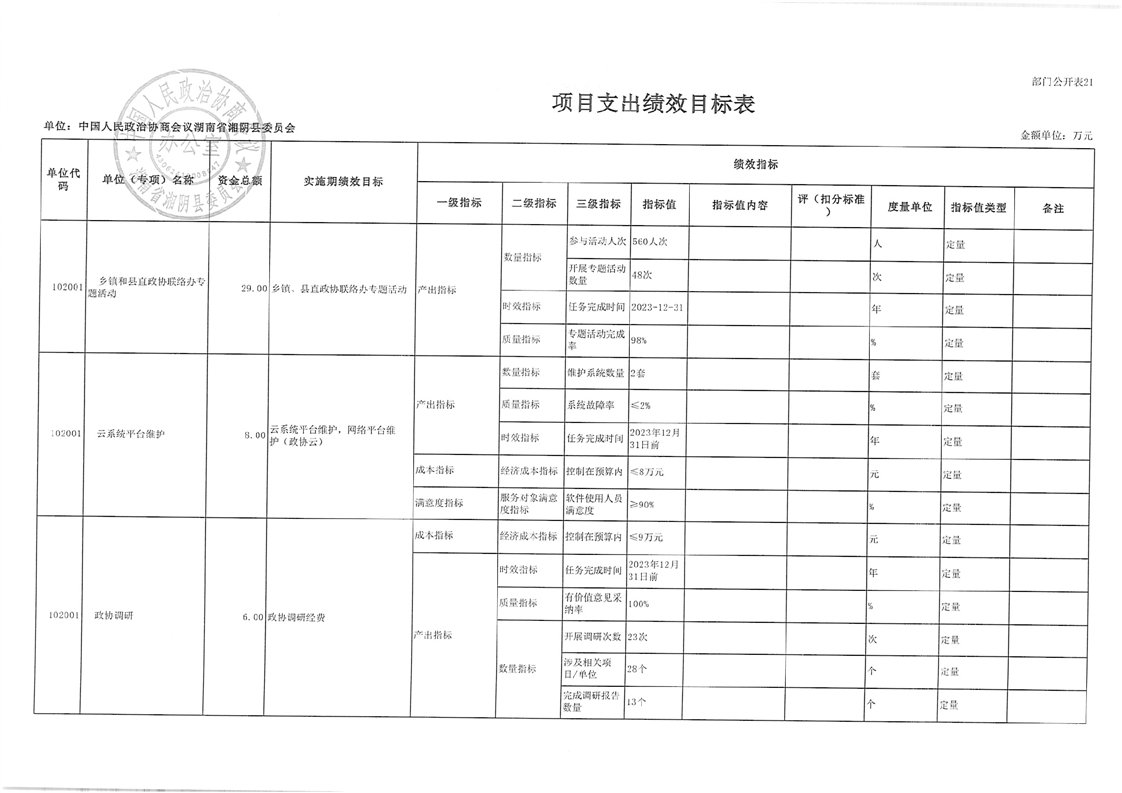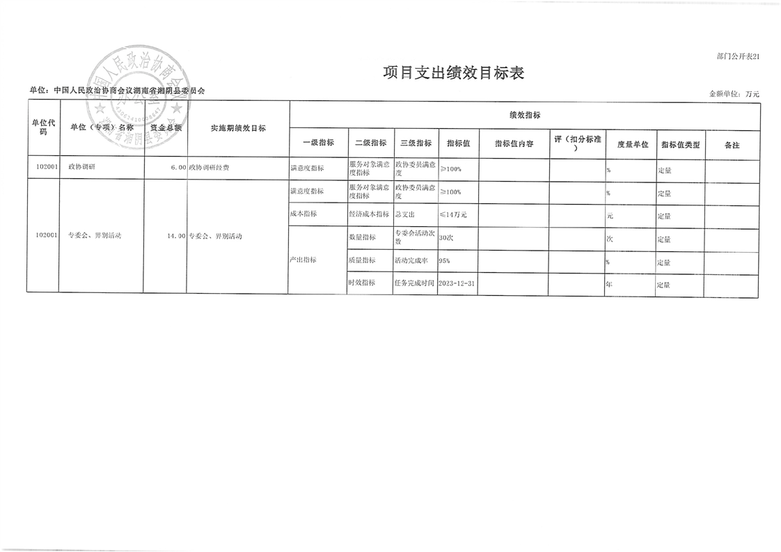 中国人民政治协商会议湖南省湘阴县委员会—2023年度—部门预算公开