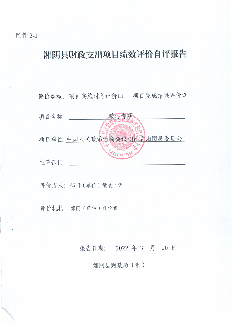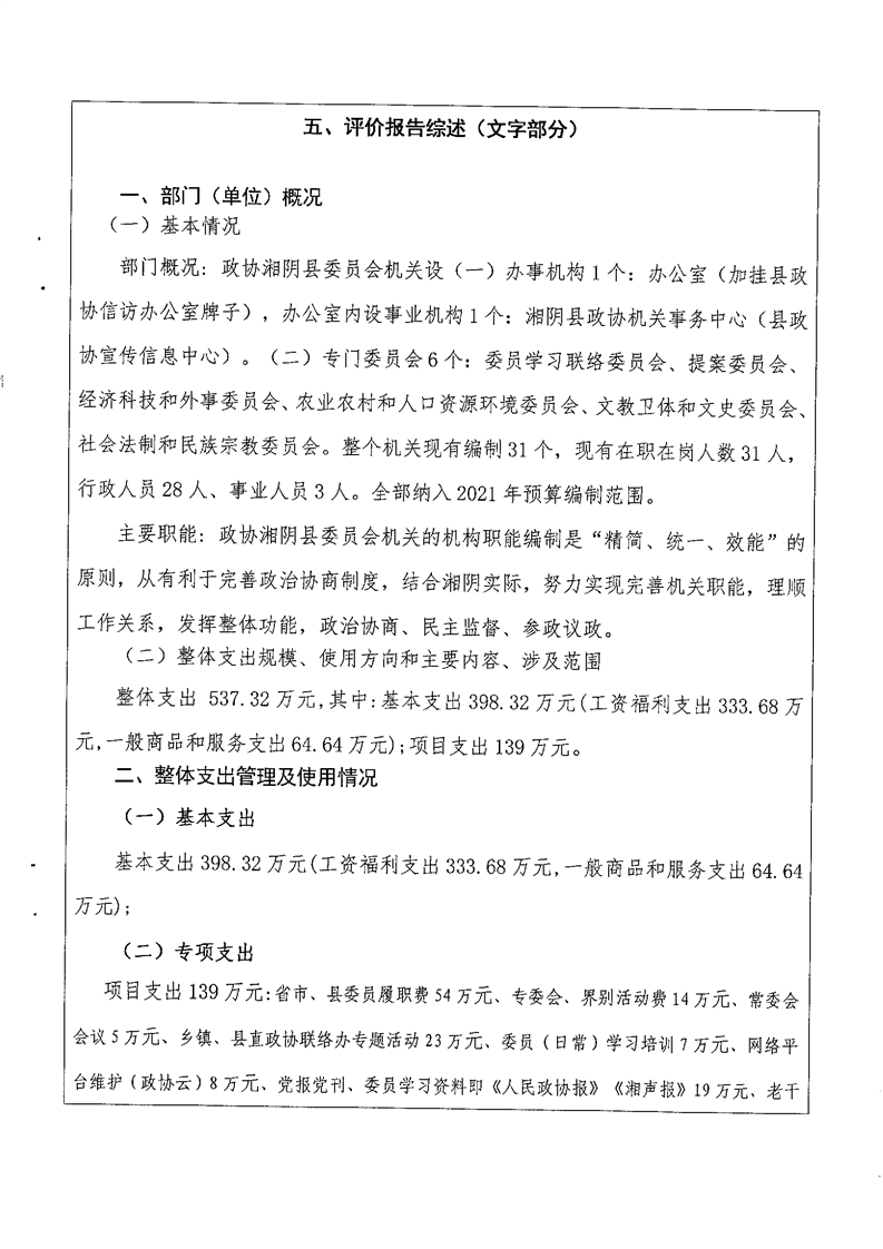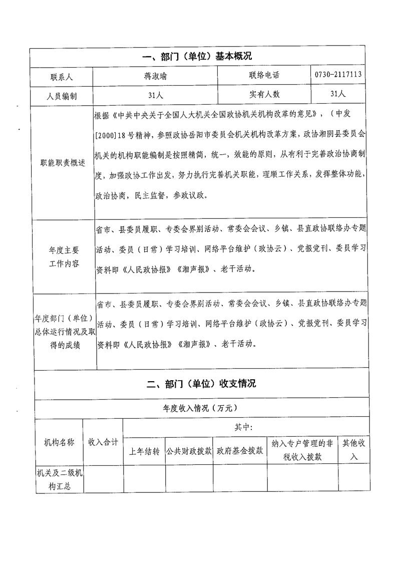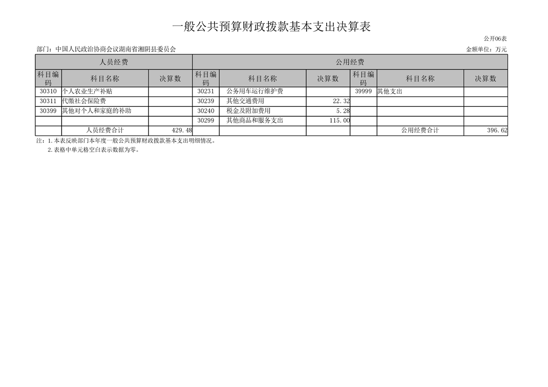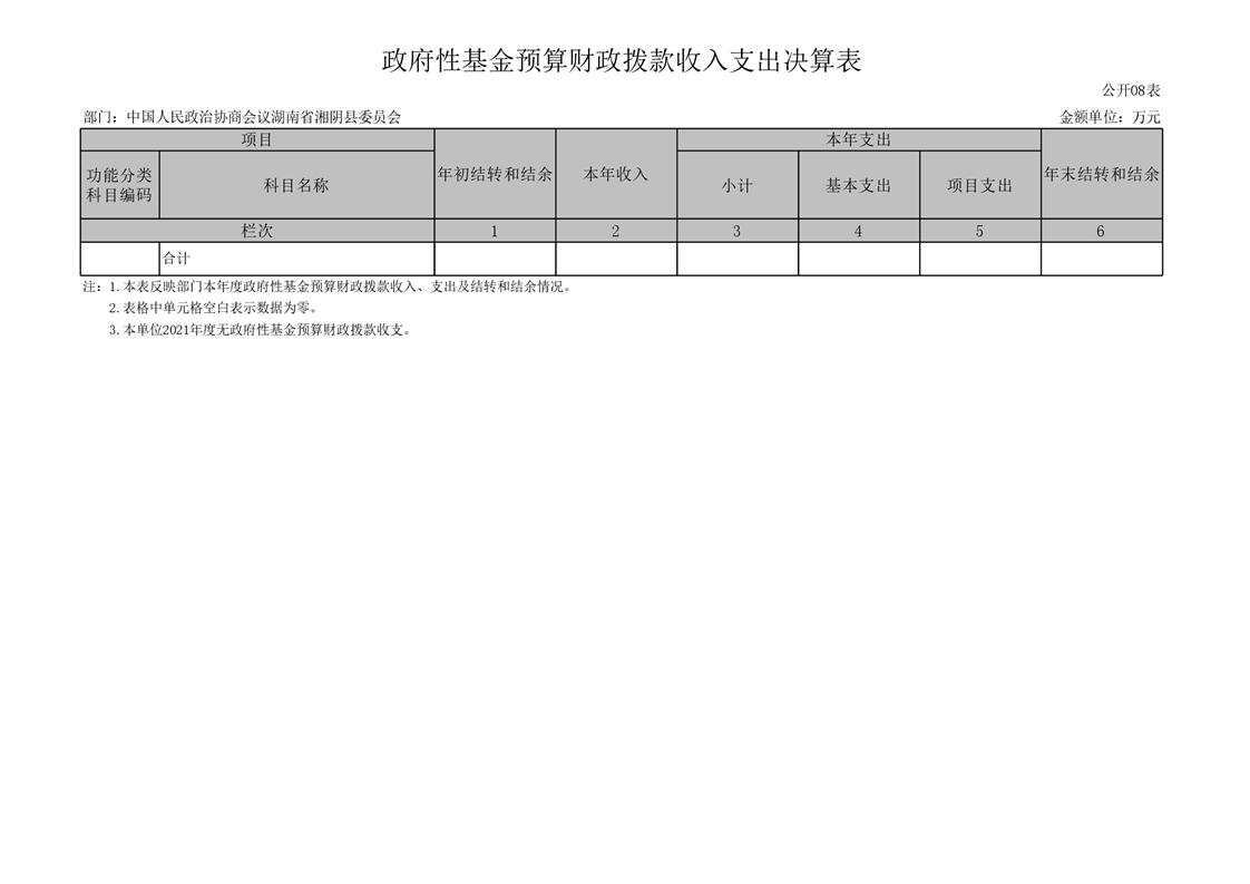 2021年度-----中国人民政治协商会议湖南省湘阴县委员会------决算公开