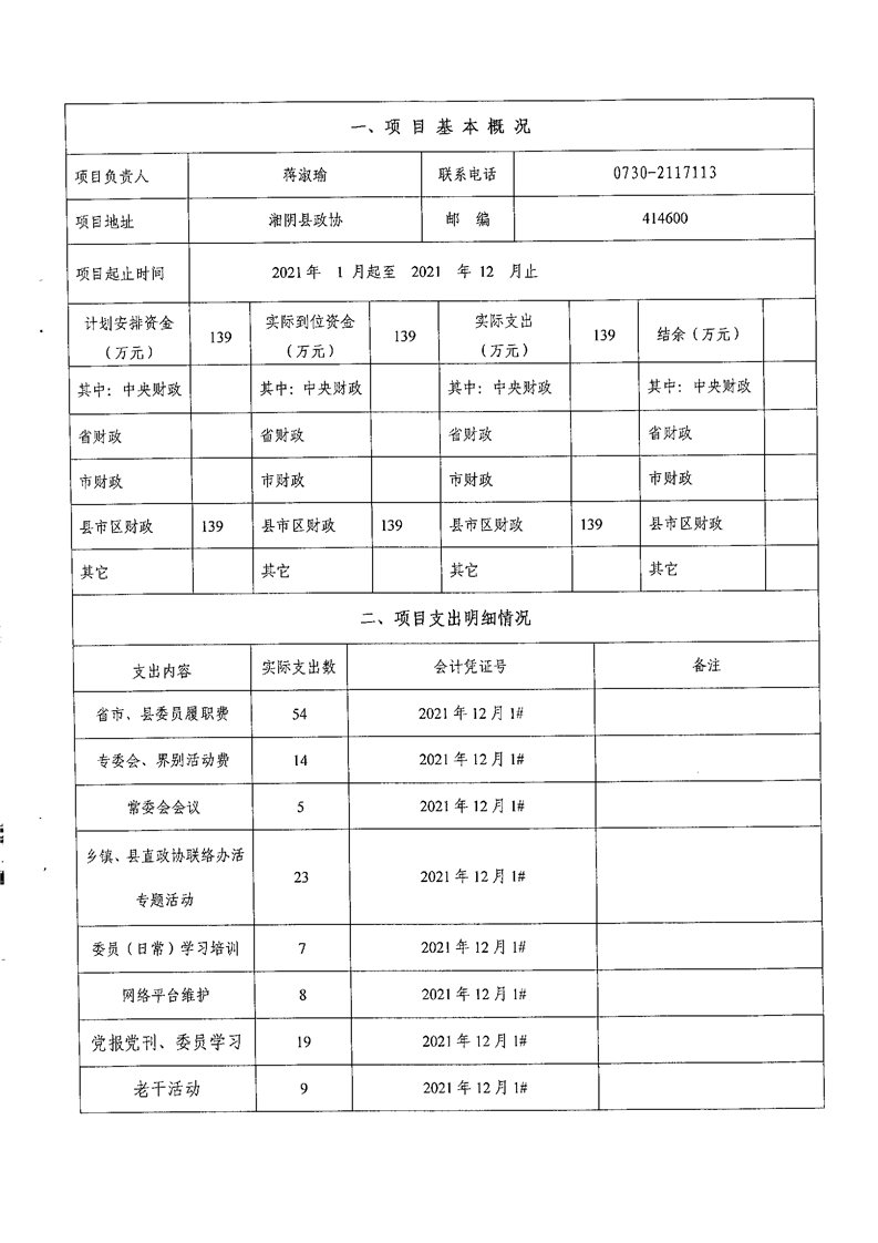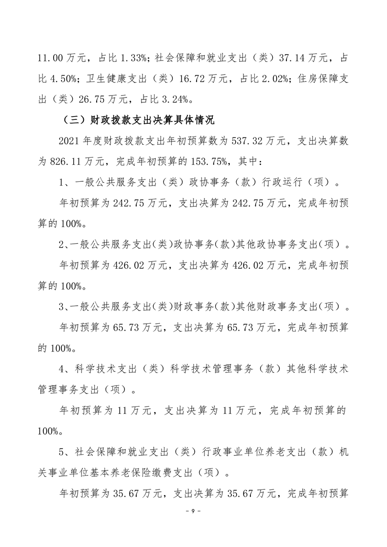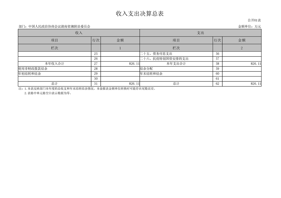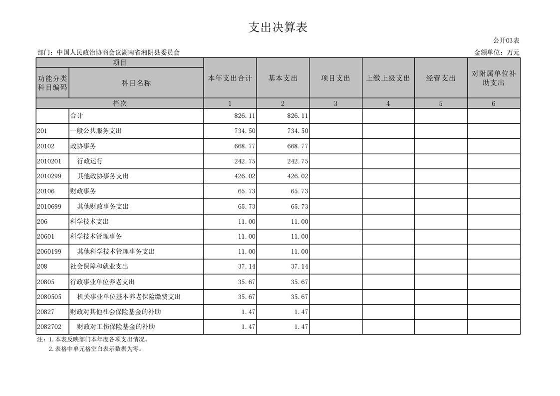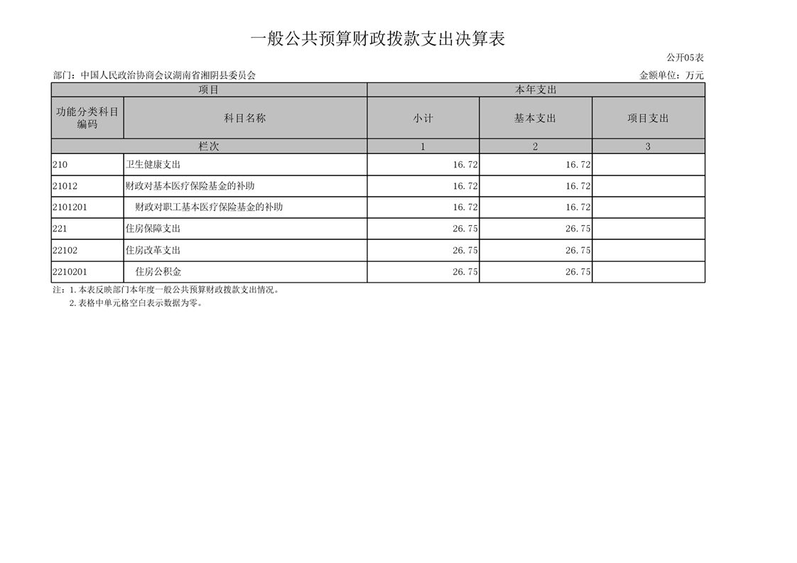 2021年度-----中国人民政治协商会议湖南省湘阴县委员会------决算公开