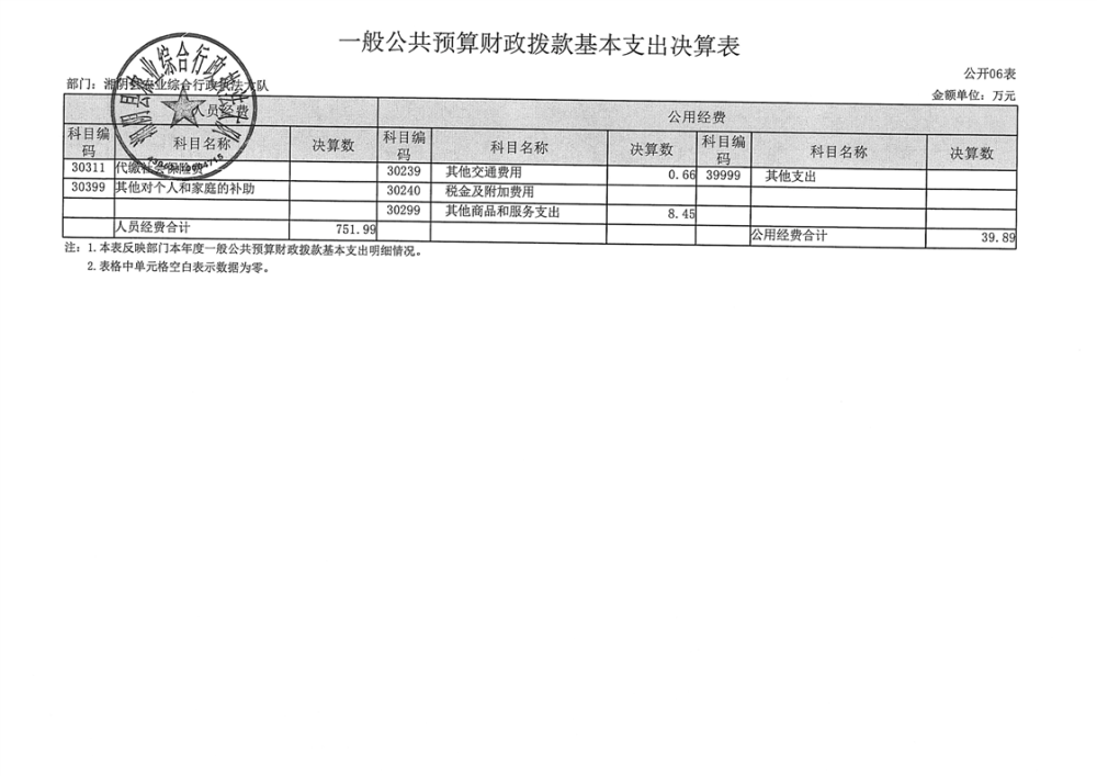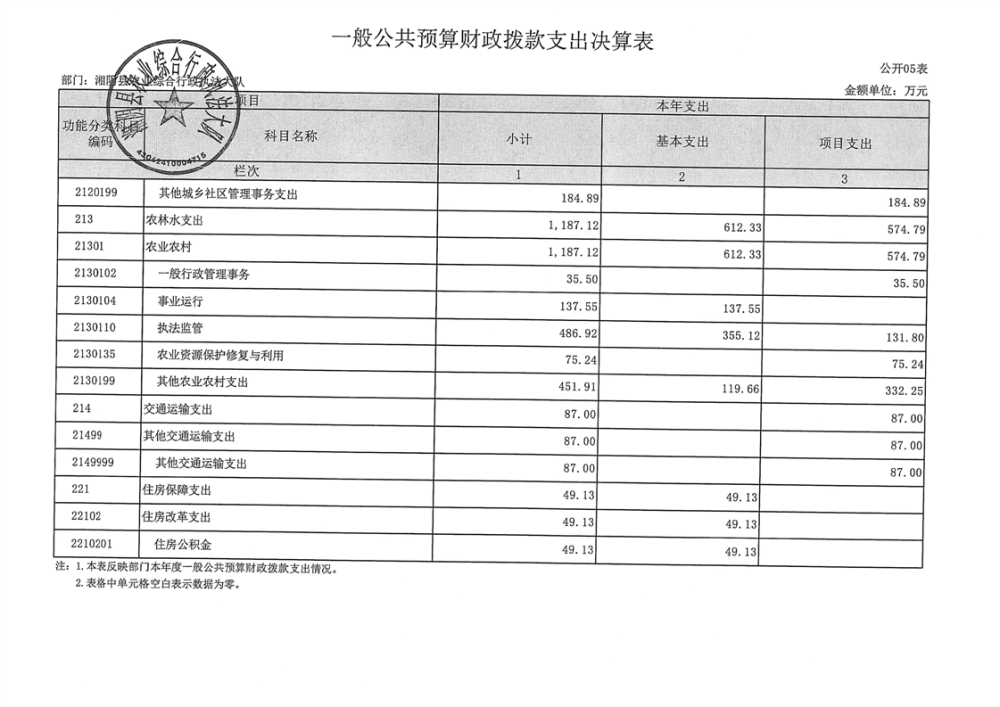 2022年-湘阴县农业综合行政执法大队-部门决算