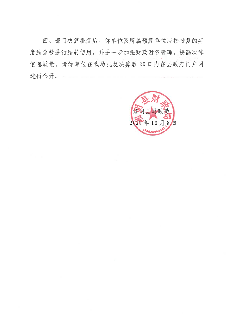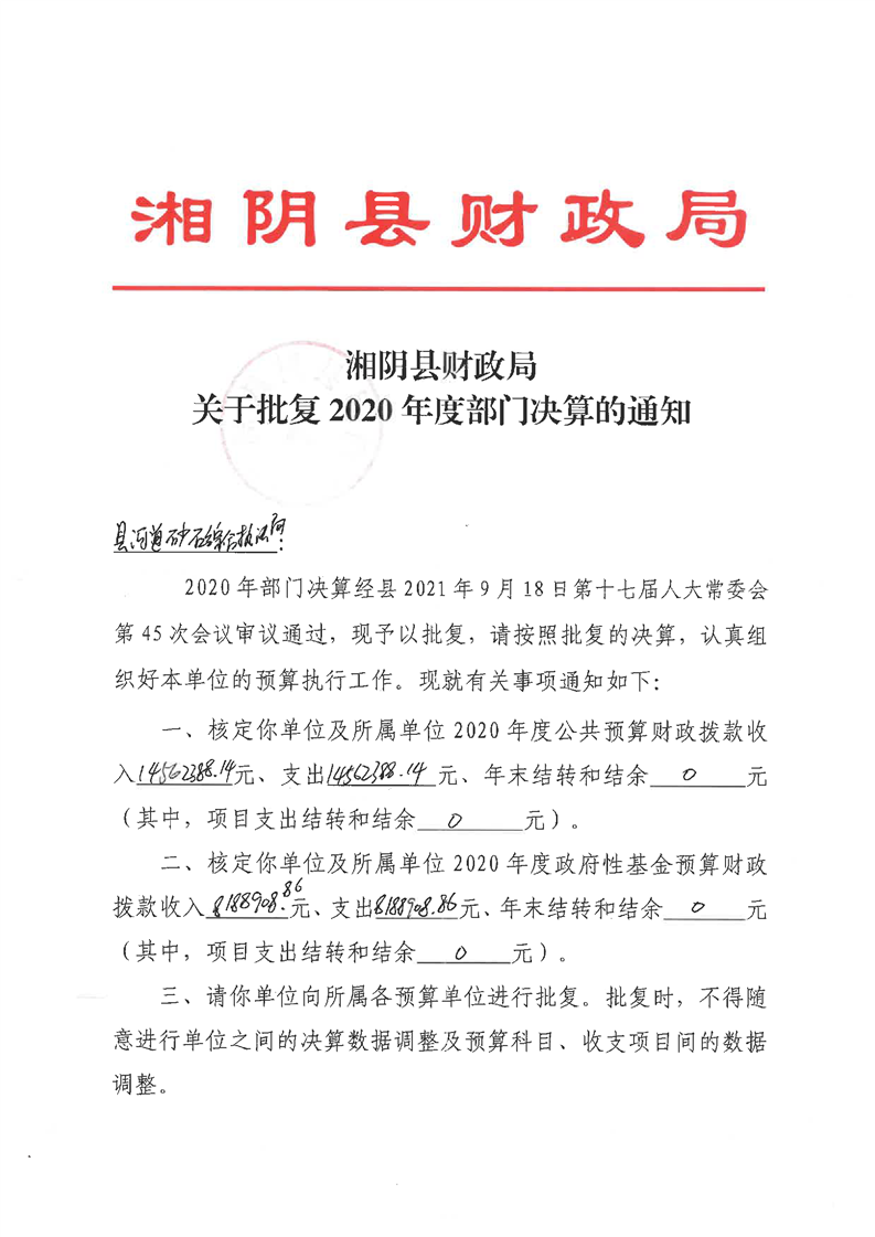 关于批复2020年度部门决算的通知