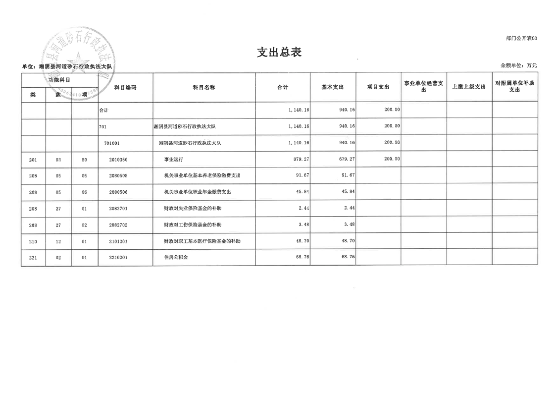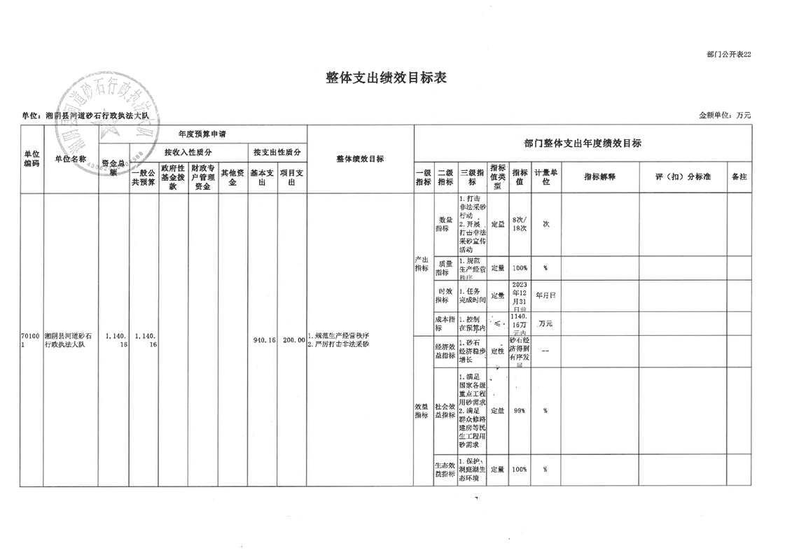湘阴县河道砂石行政执法大队-2023年度-部门预算公开