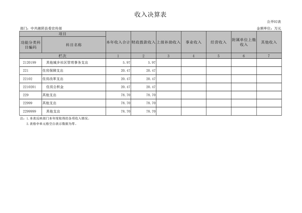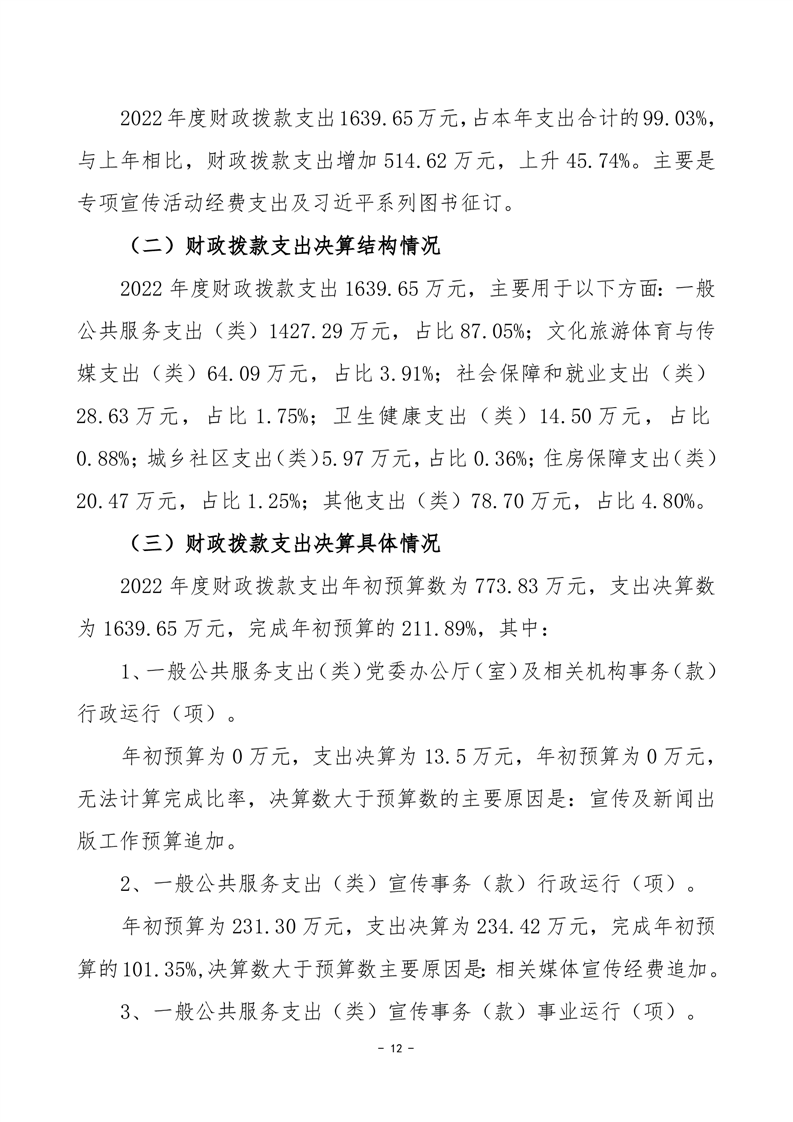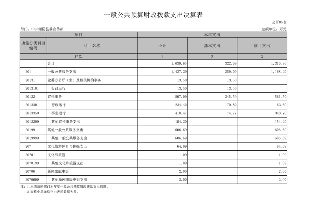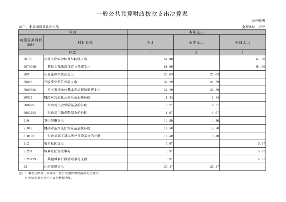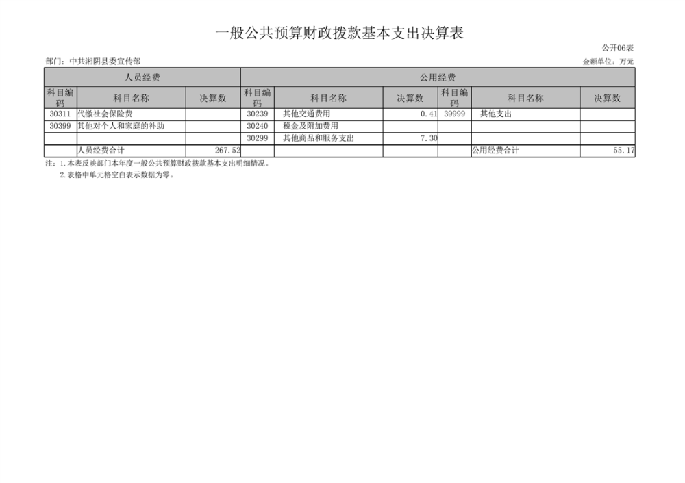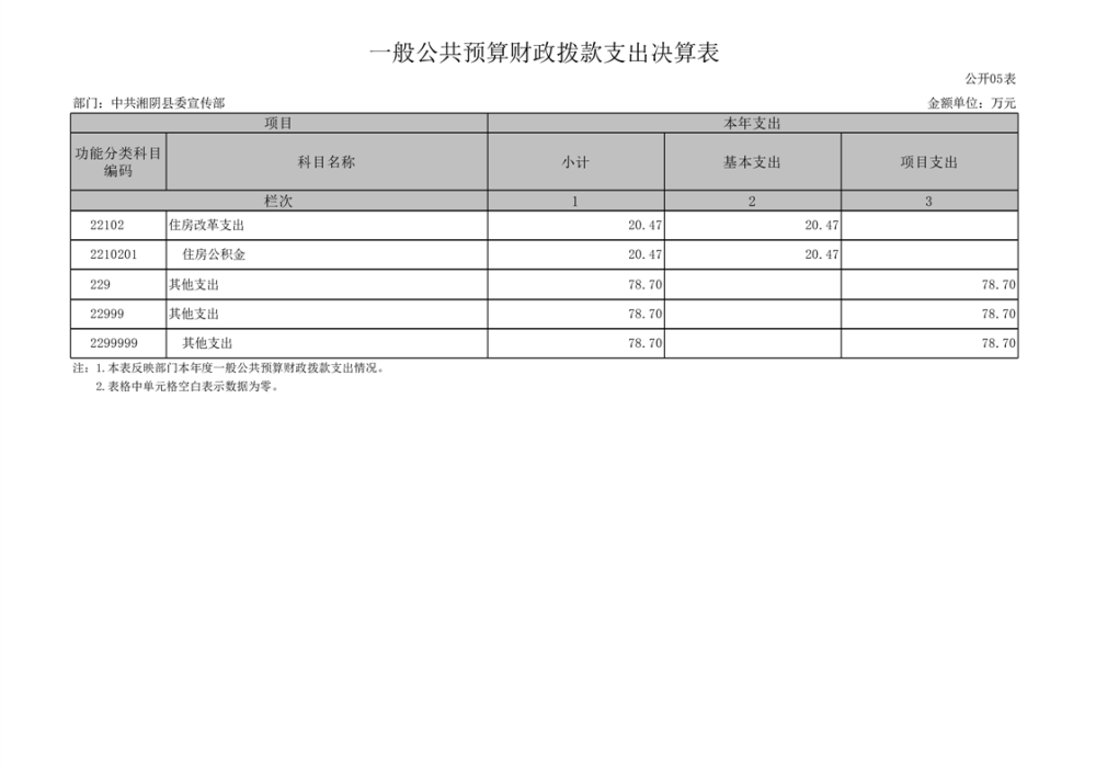 中共湘阴县委宣传部-2022年度-决算公开
