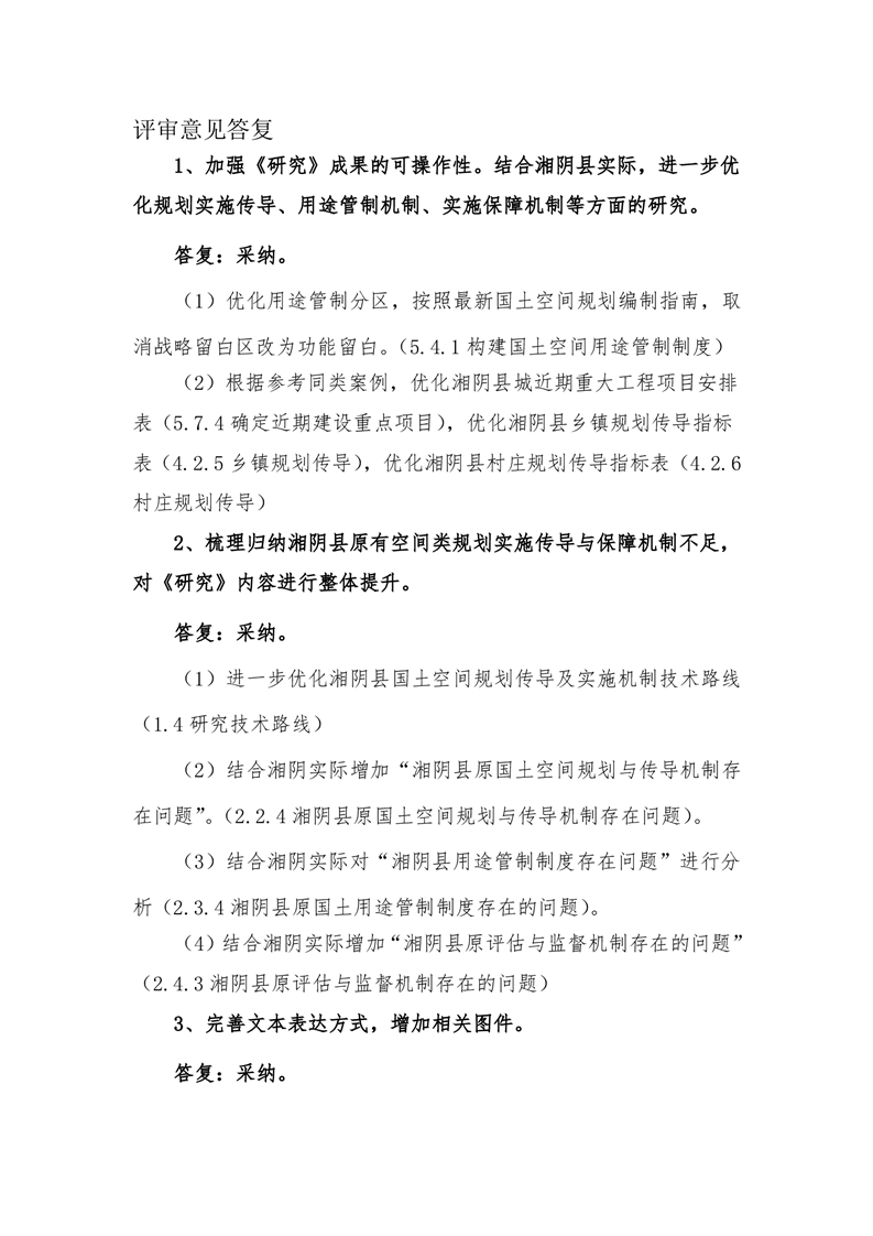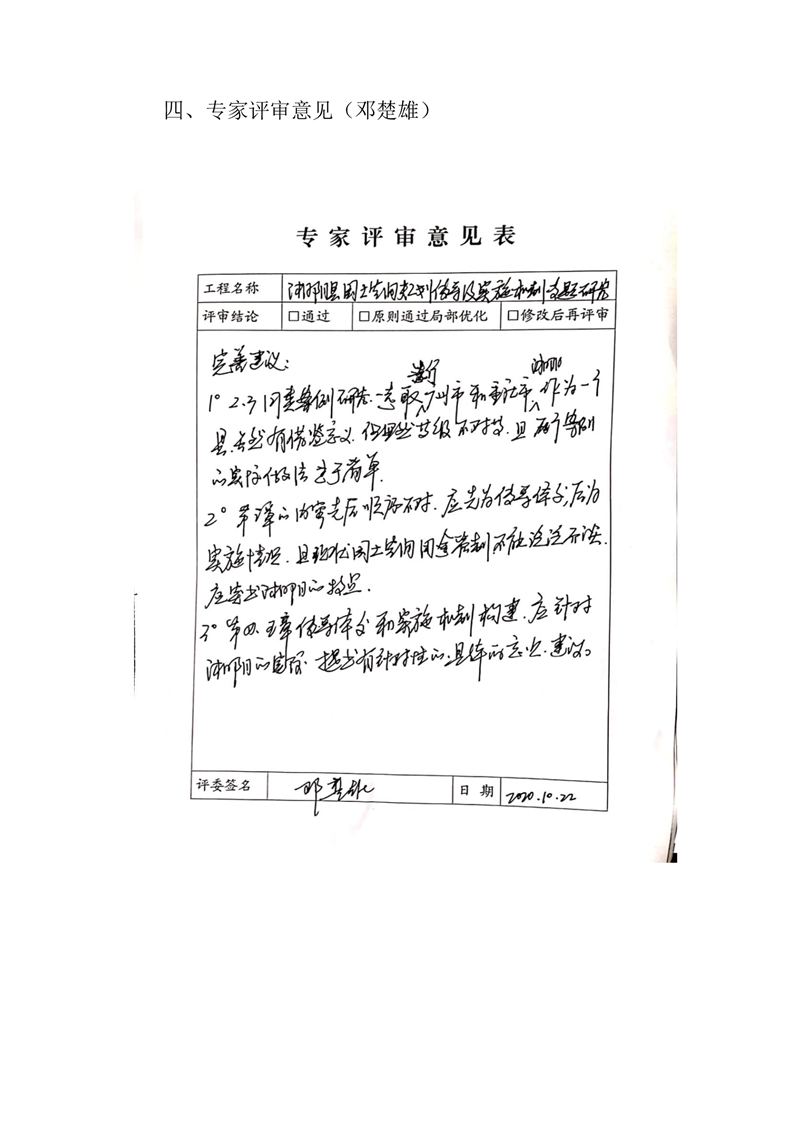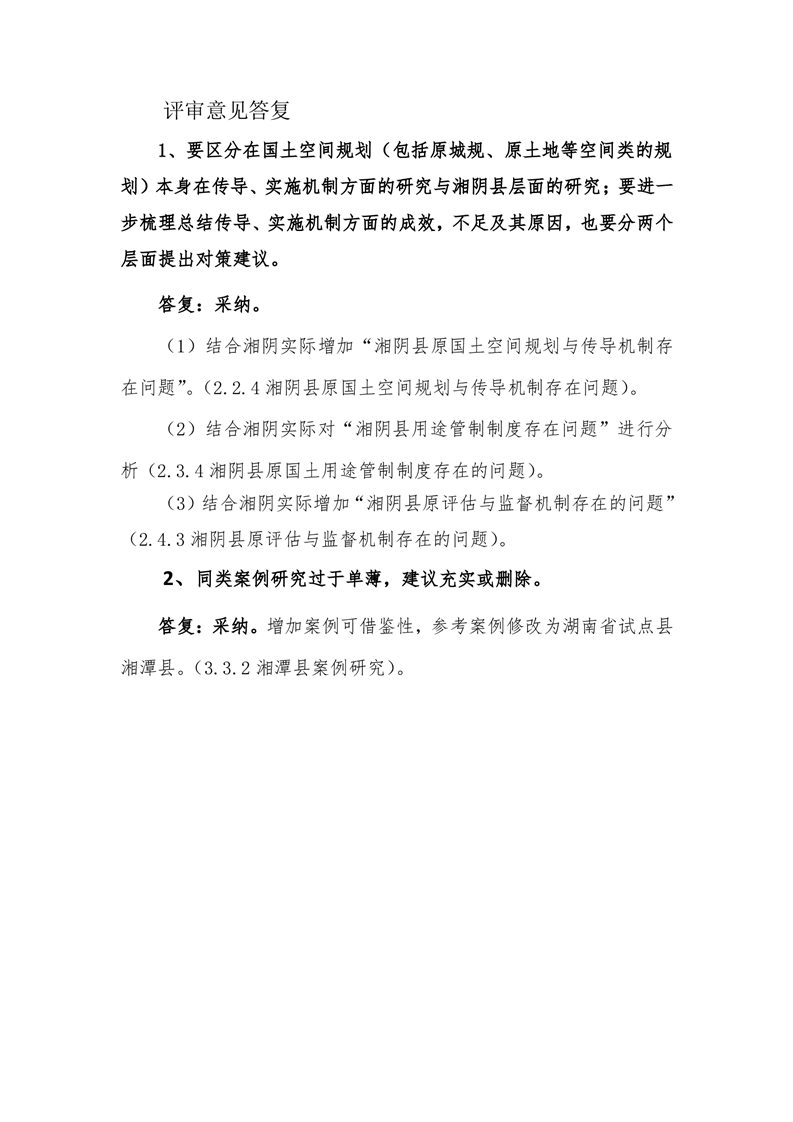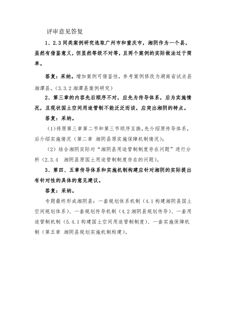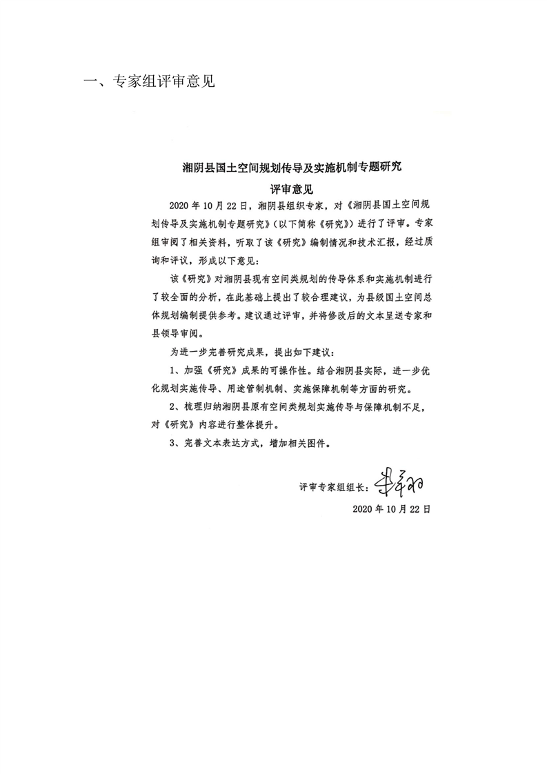 湘阴县国土空间规划传导及实施机制专题研究评审意见