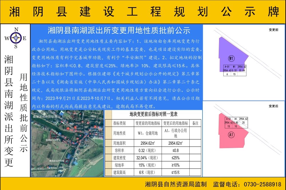 湘阴县南湖派出所变更用地性质批前公示