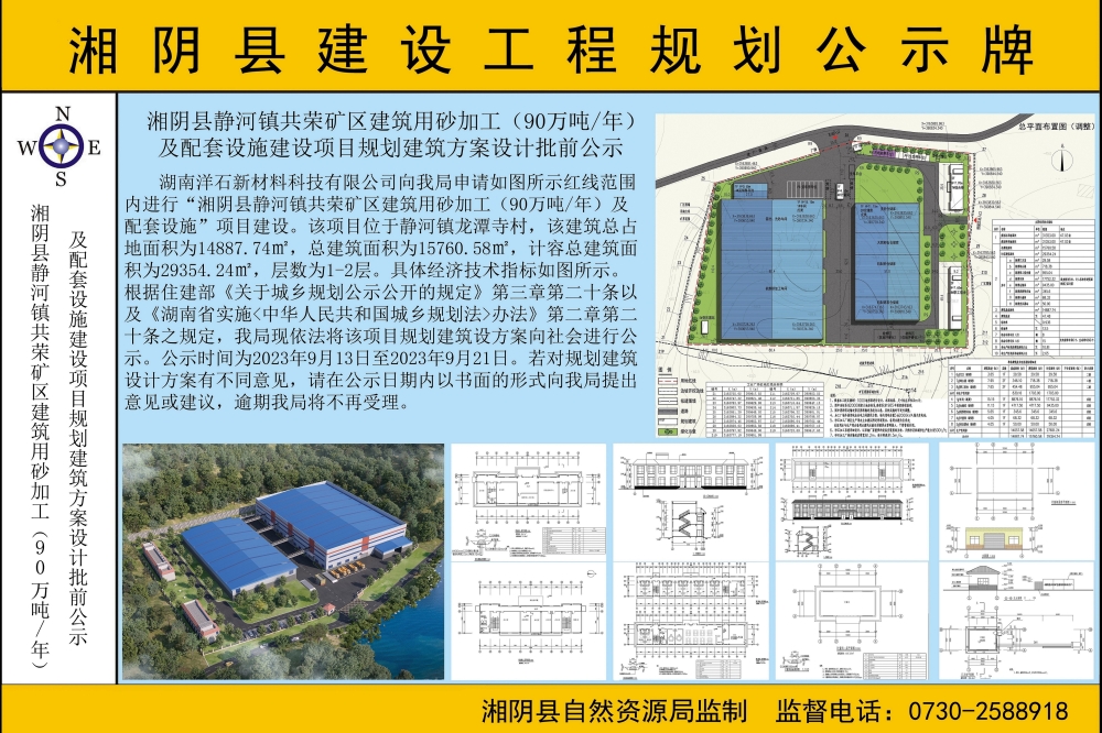 湘阴县静河镇共荣矿区建筑用砂加工(90万吨/年)及配套设施建设项目规划建筑方案设计批前公示