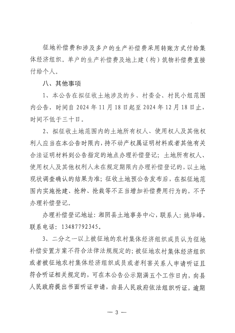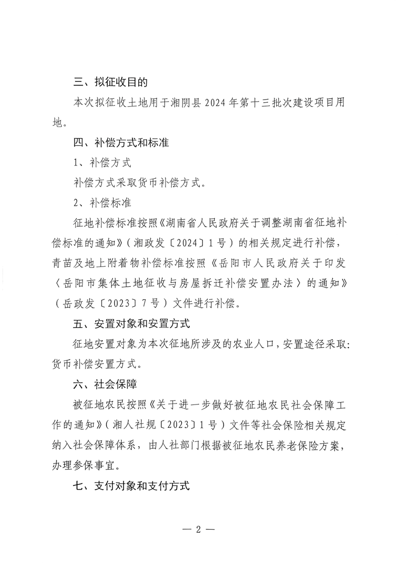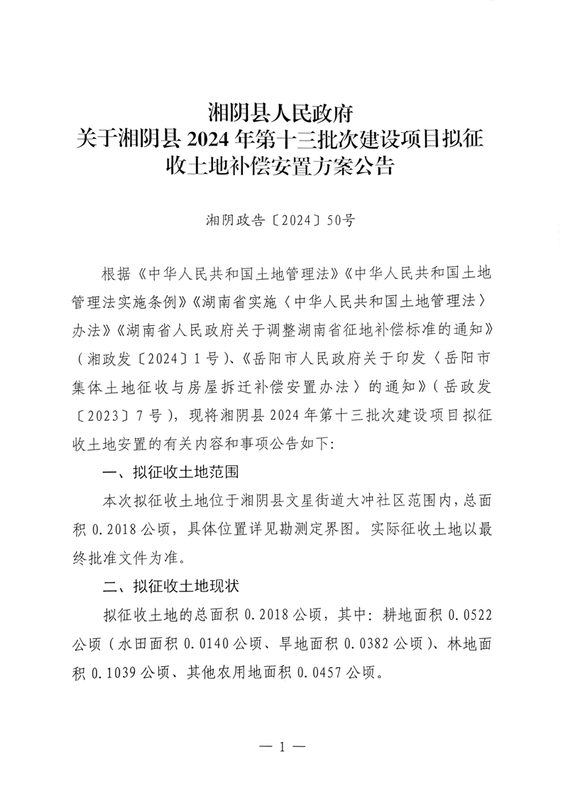 关于湘阴县2024年第十三批次建设项目拟征收土地补偿安置方案公告