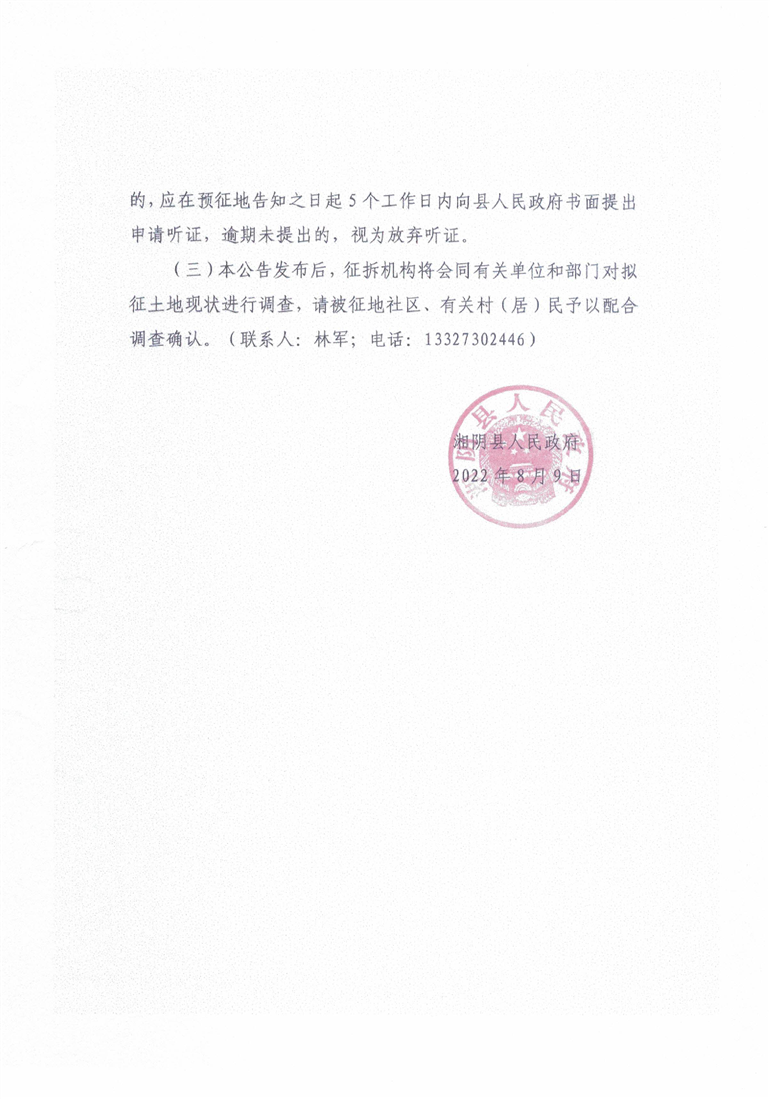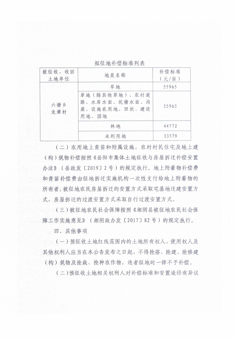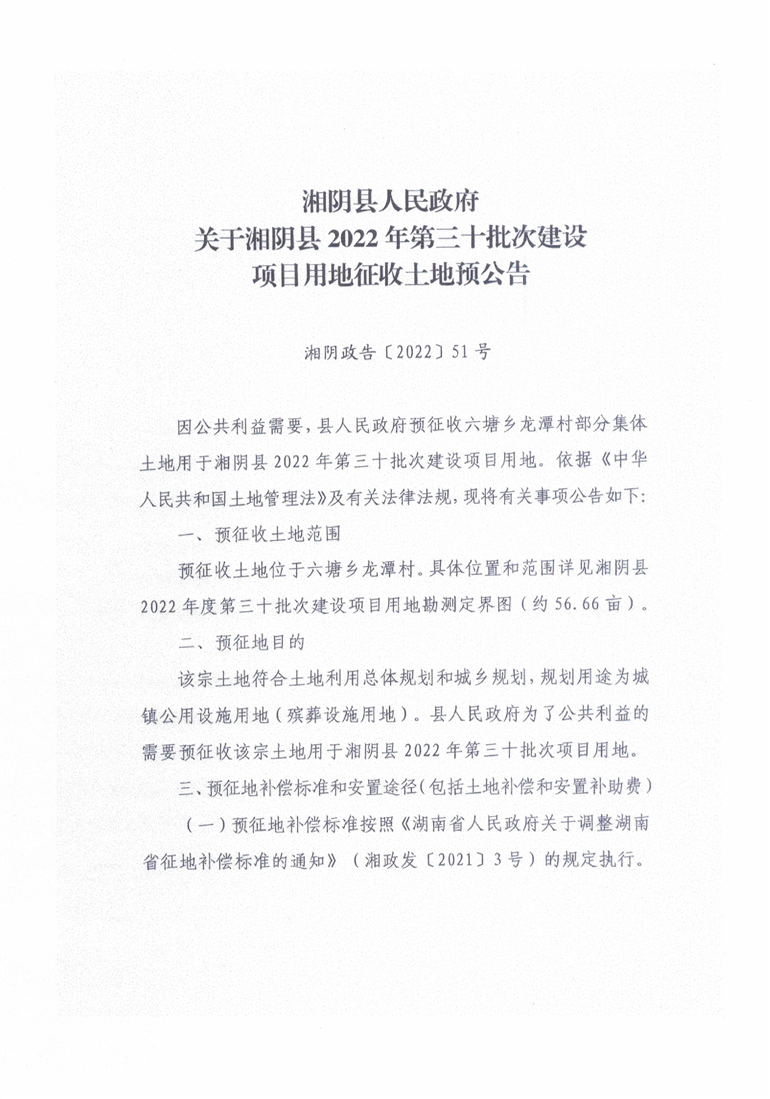 关于湘阴县2022年第三十批次建设项目用地征收土地预公告
