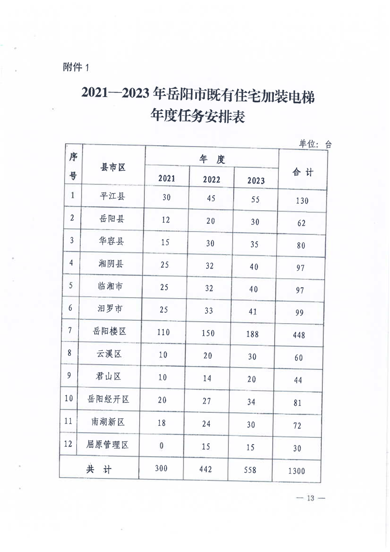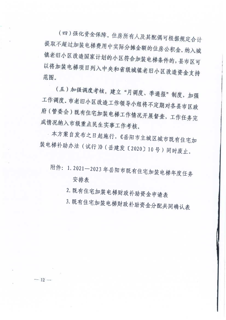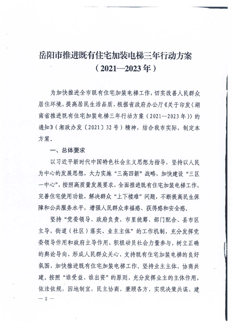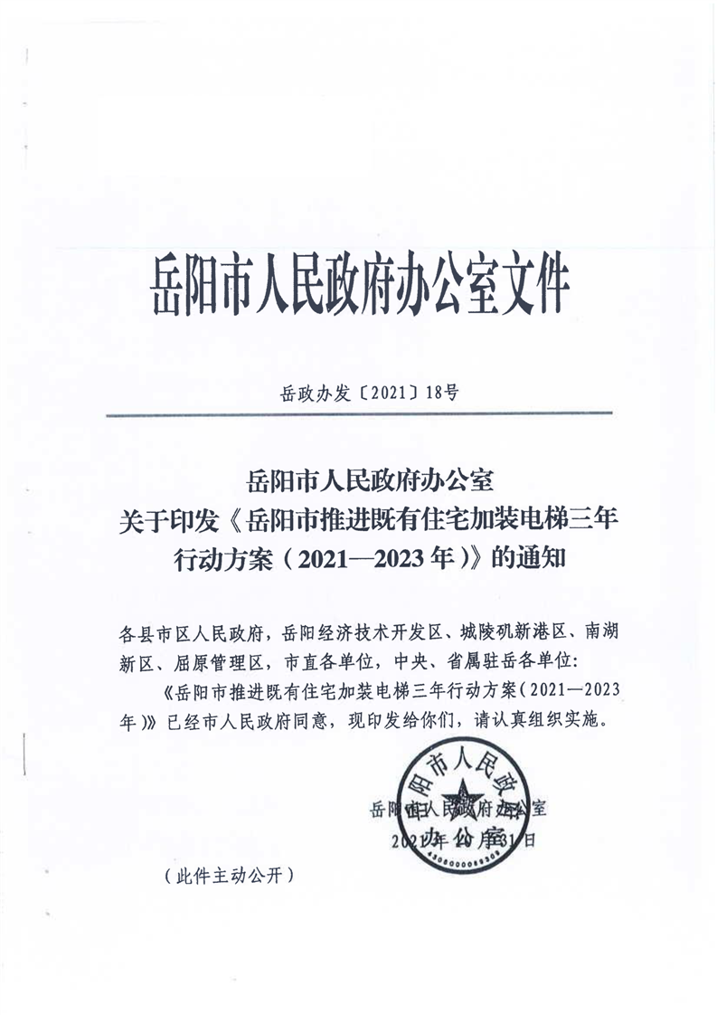 岳阳市人民政府办公室关于印发《岳阳市推进既有住宅加装电梯三年行动方案(2021-2023年)》的通知