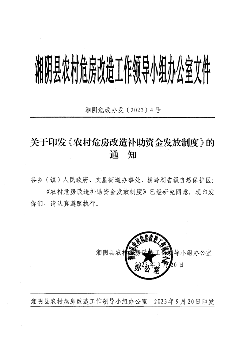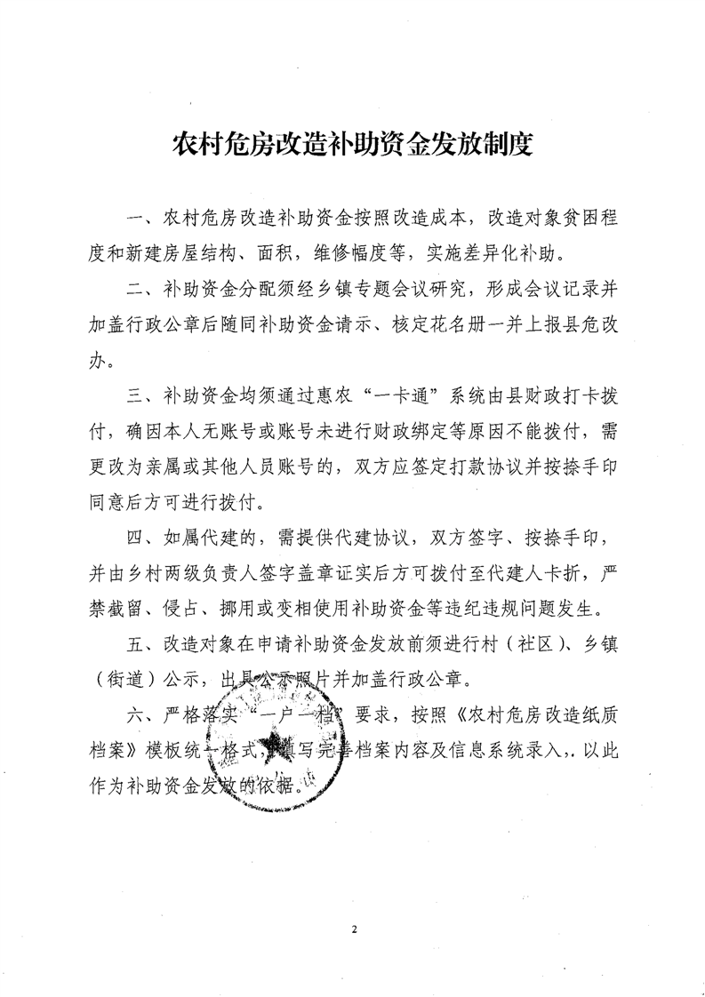 关于印发《农村危房改造补助资金发放制度》的通知