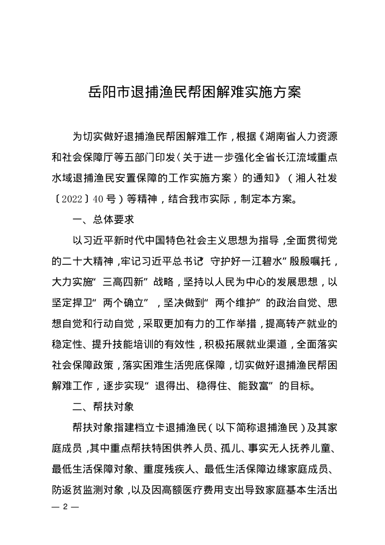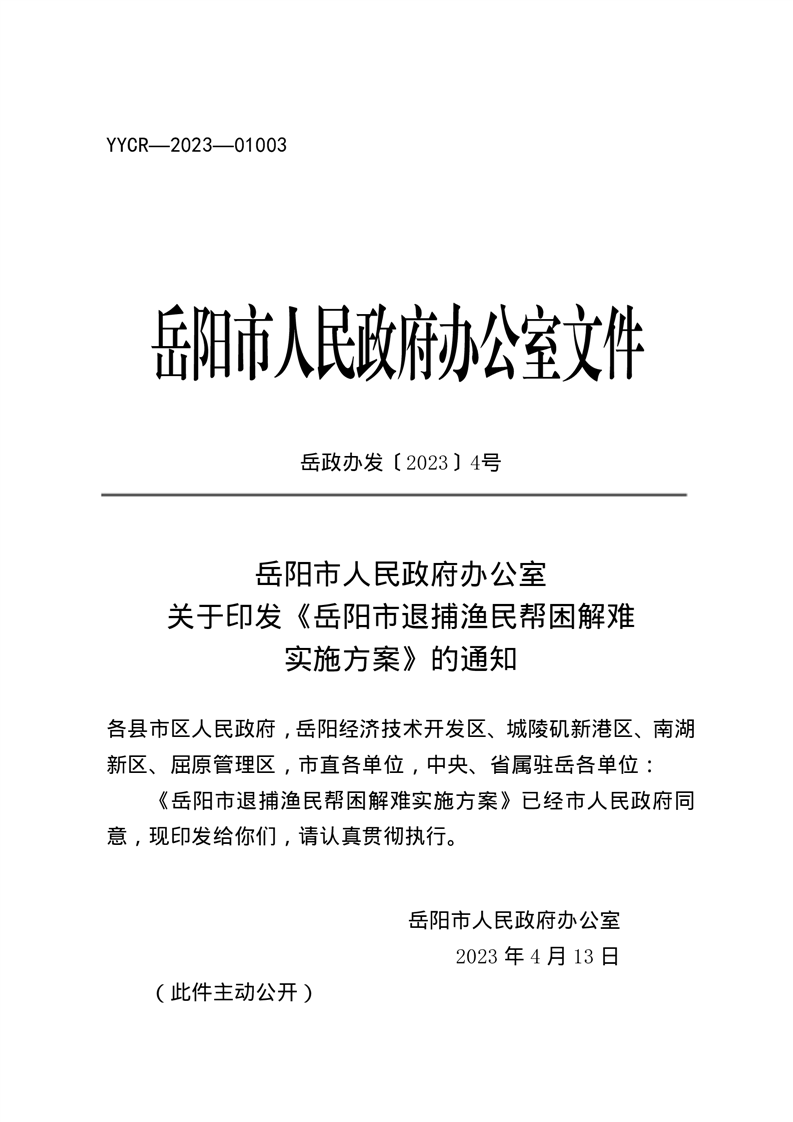 关于印发《岳阳市退捕渔民帮困解难实施方案》的通知