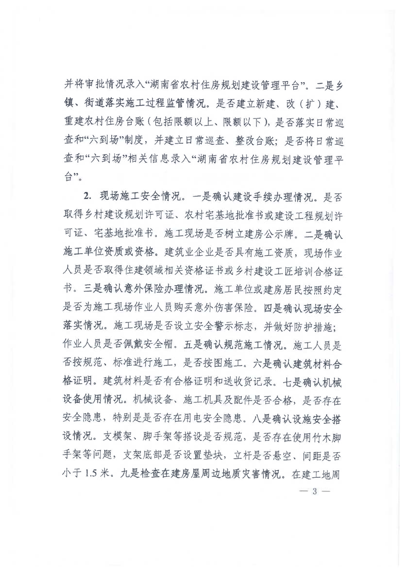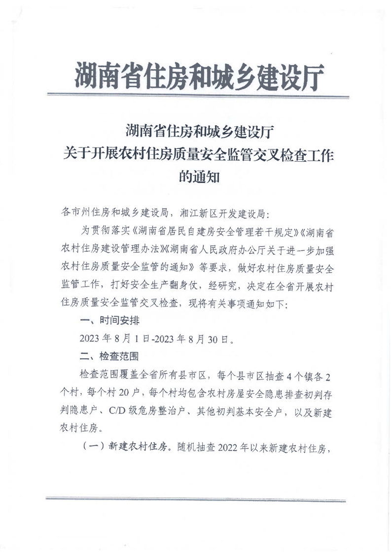 湖南省住房和城乡建设厅关于开展农村住房质量安全监管交叉检查工作的通知