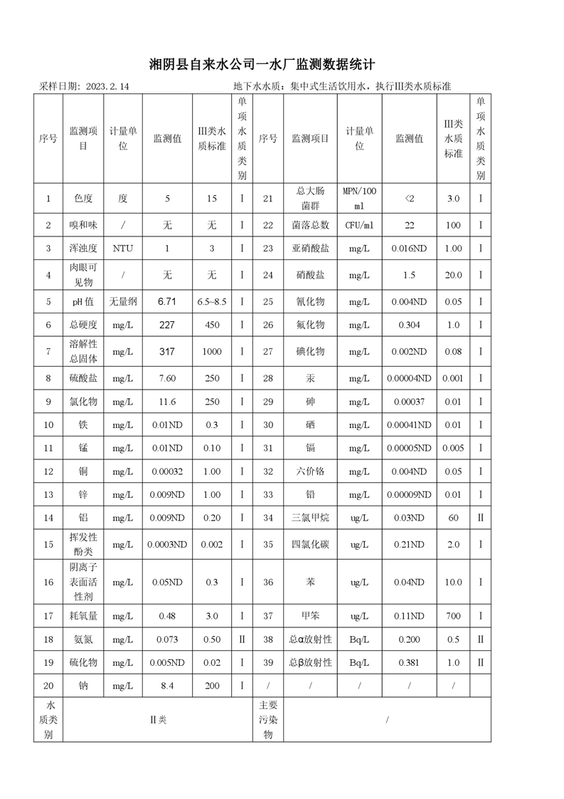 2023年2月份-湘阴县水质监测点-监测情况公示