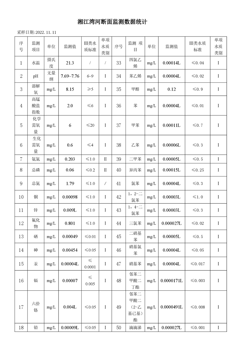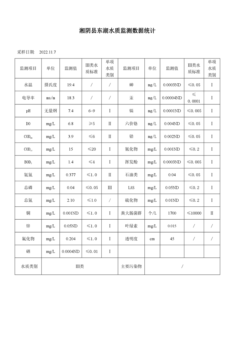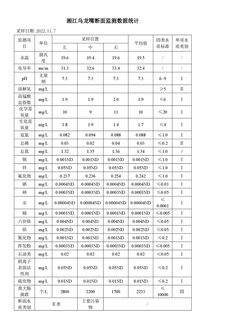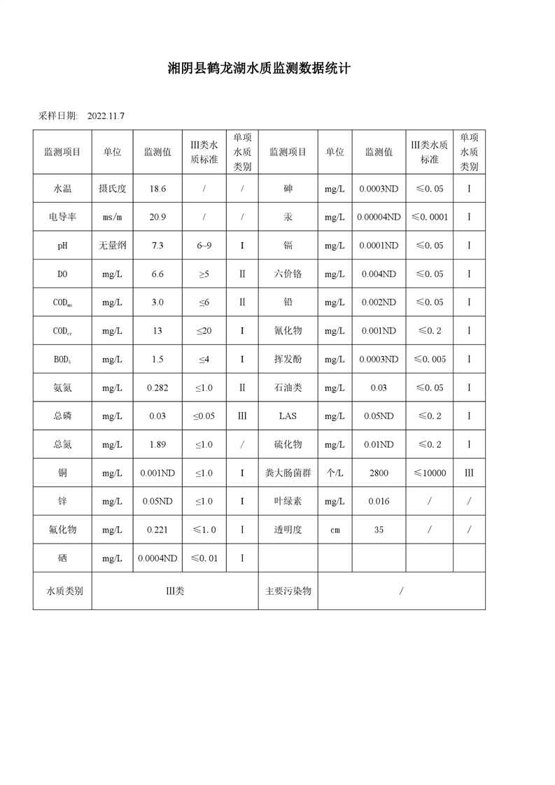 2022年11月份-湘阴县水质监测点-监测情况公示