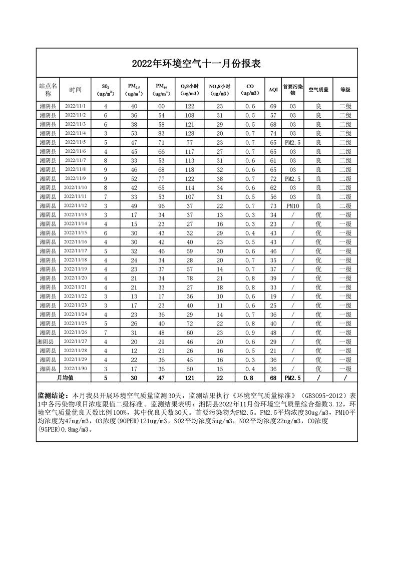 2022年11月份-环境空气质量监测-情况公示