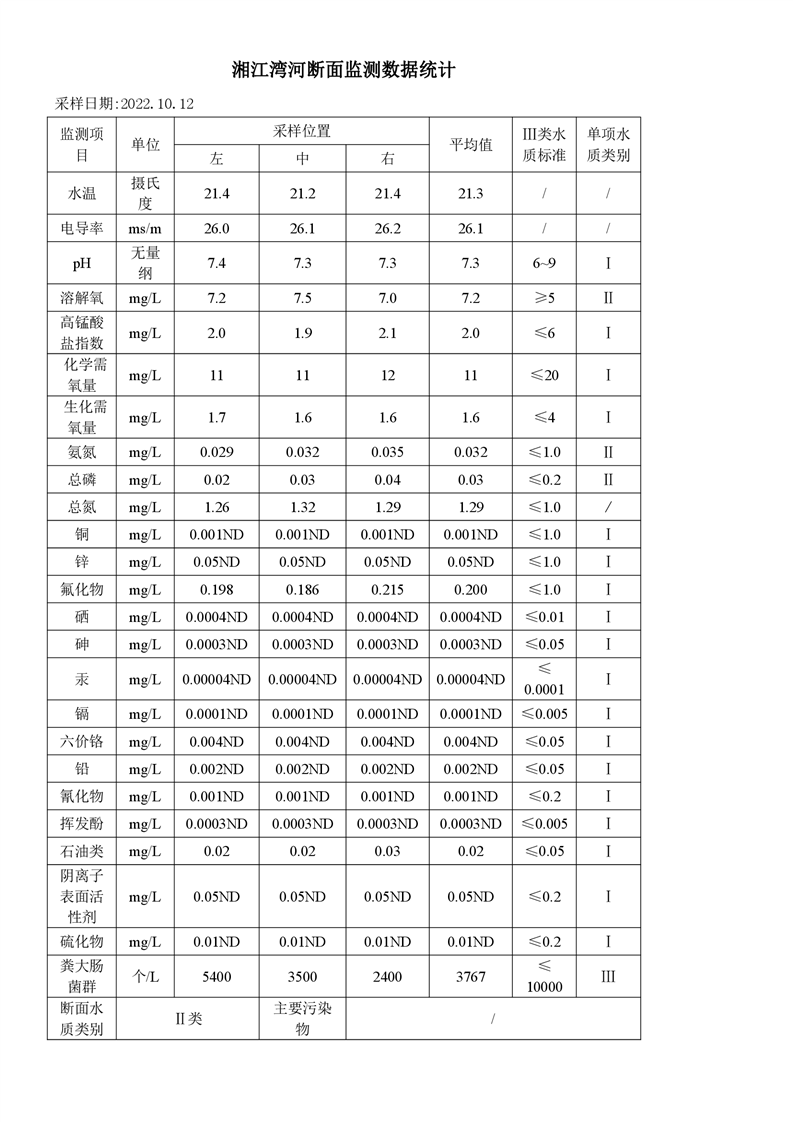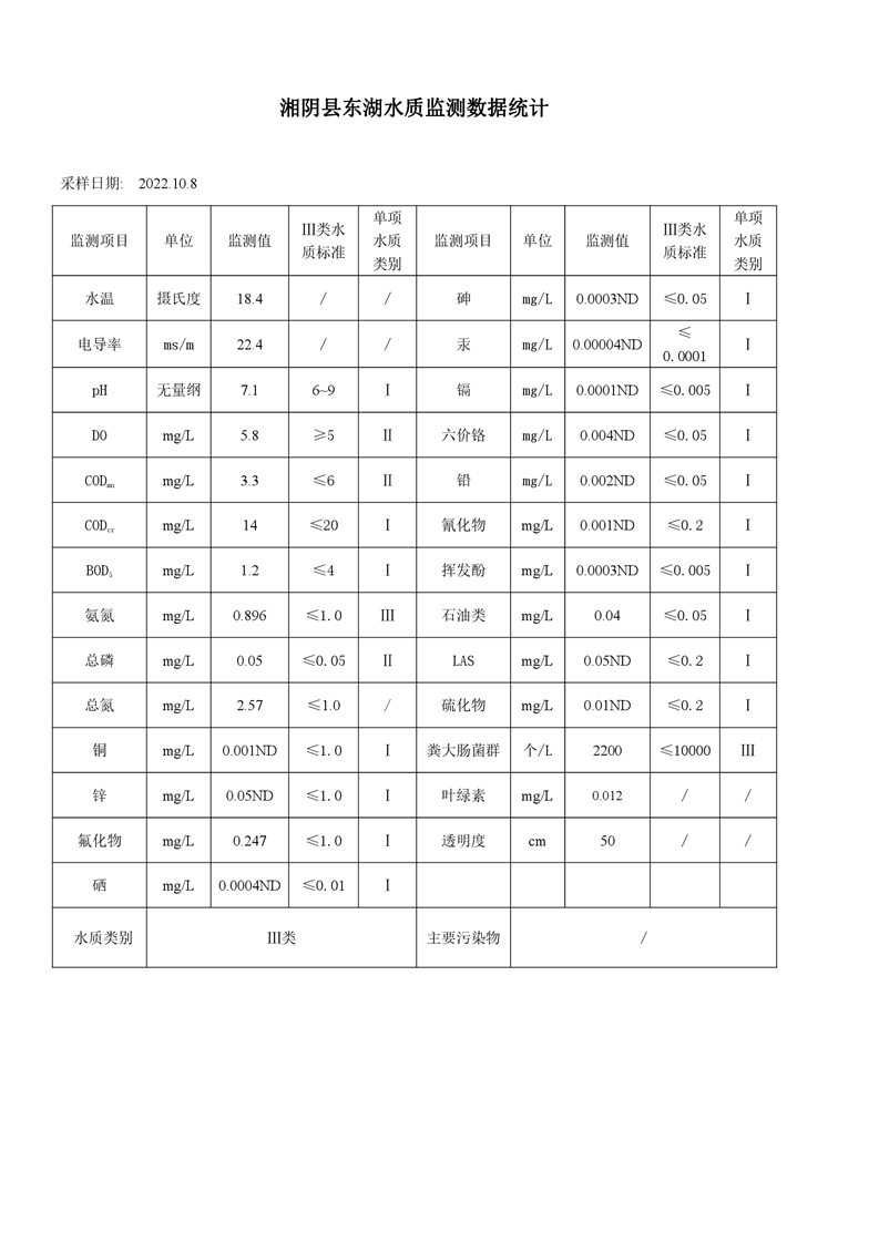 2022年10月份-湘阴县水质监测点-监测情况公示