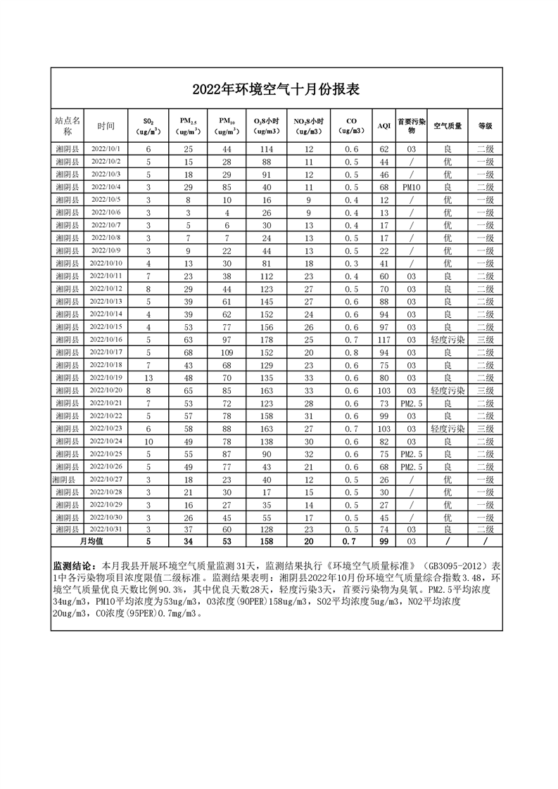 2022年10月份-环境空气质量监测-情况公示