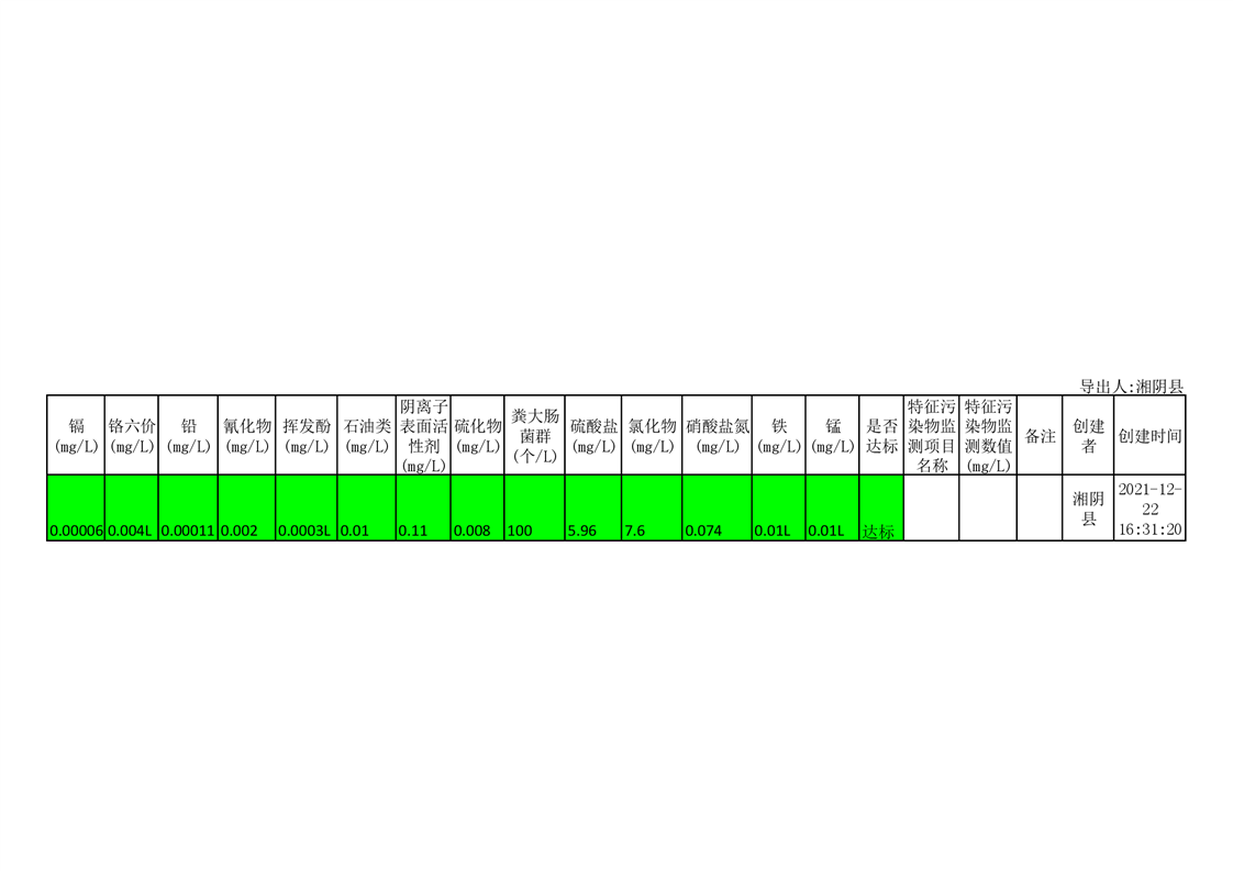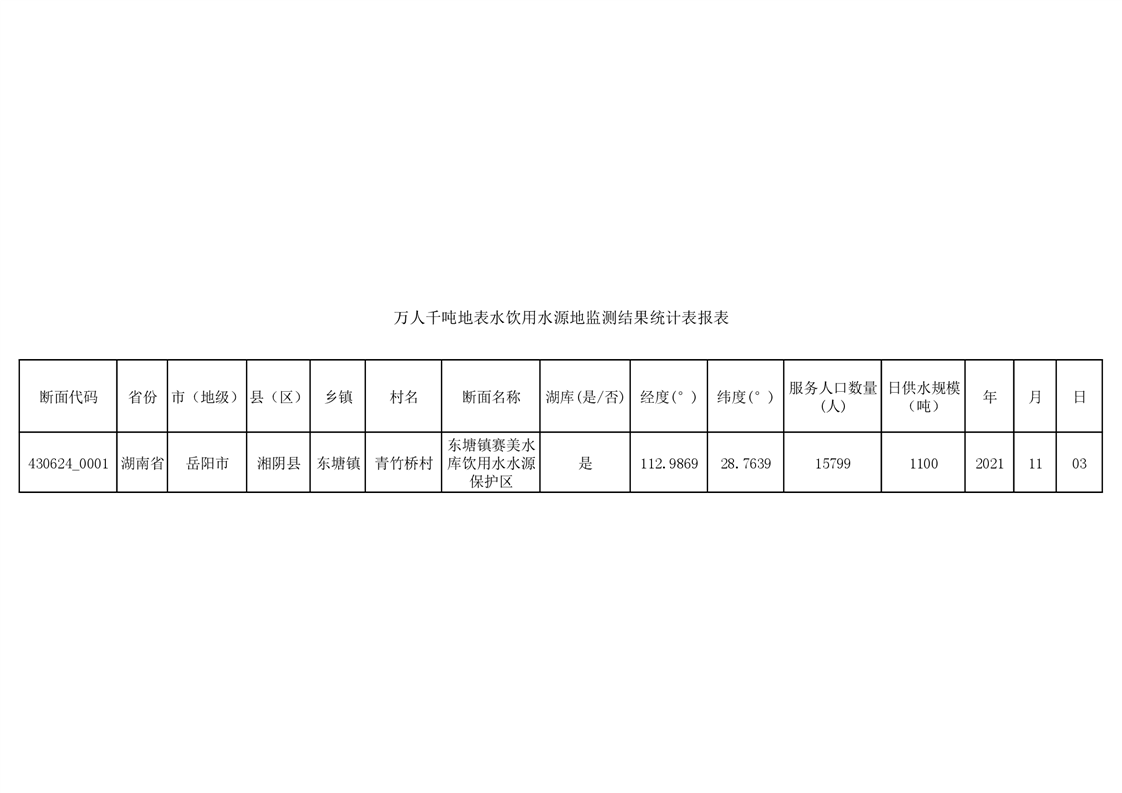 2021年4季度--农村村庄地表水饮用水源地监测结果统计表