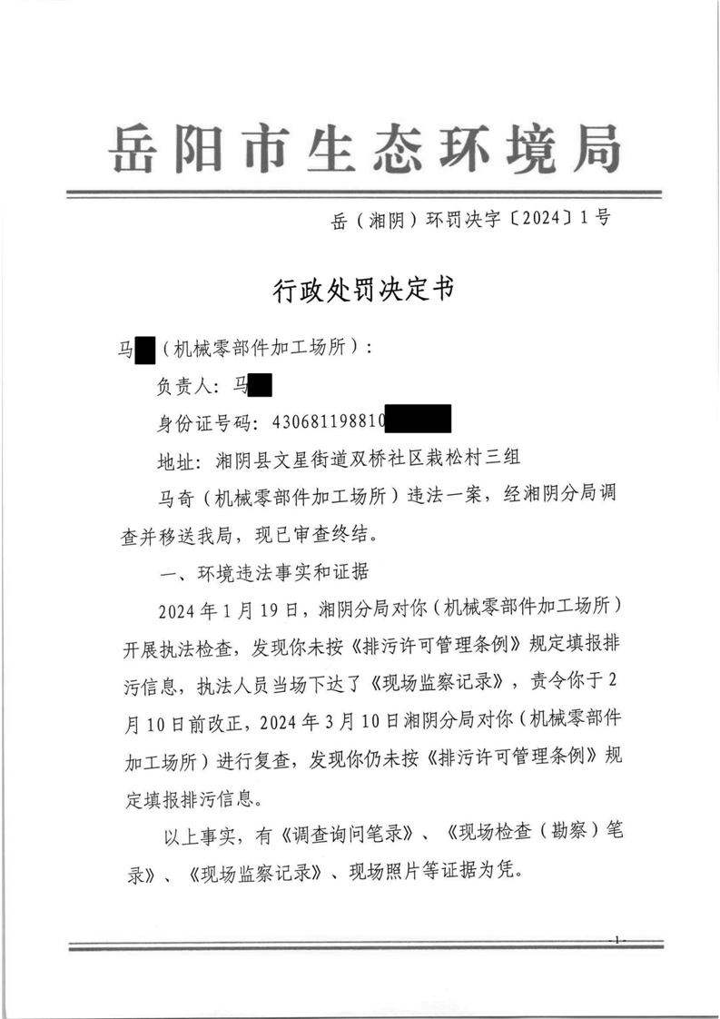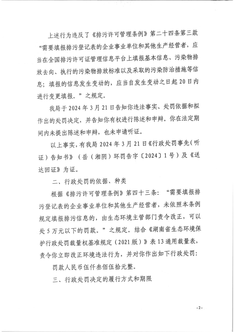 岳(湘阴)环罚决字[2024]1号