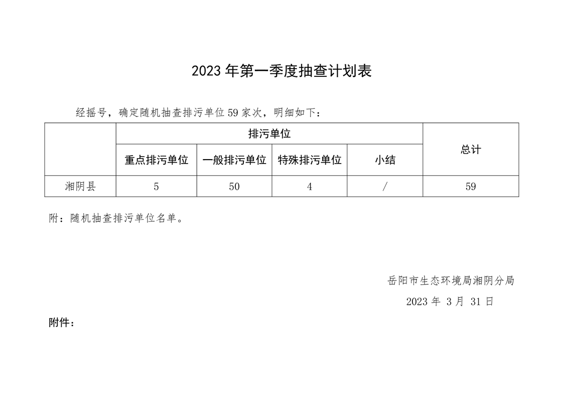 2023年第一季度抽查计划公示表