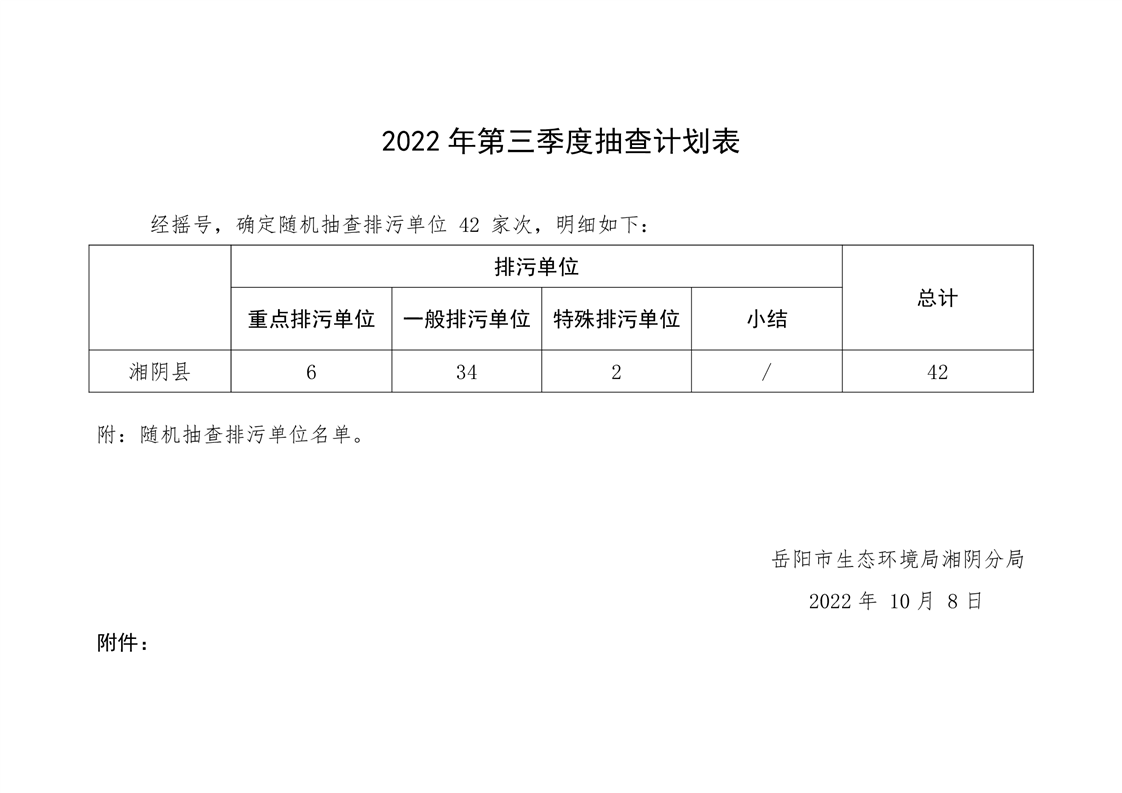 2022年第3季度抽查计划公示表