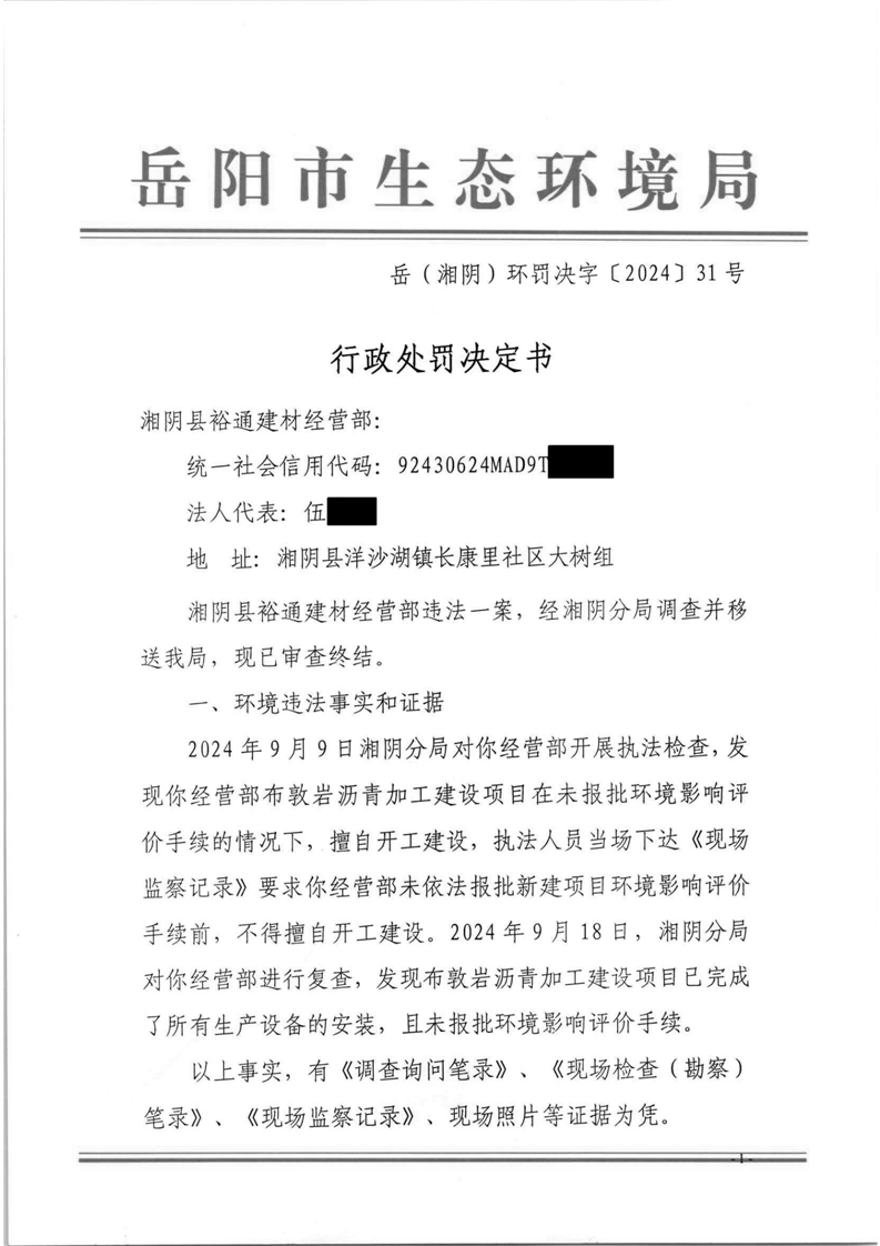 岳(湘阴)环罚决字[2024]31号
