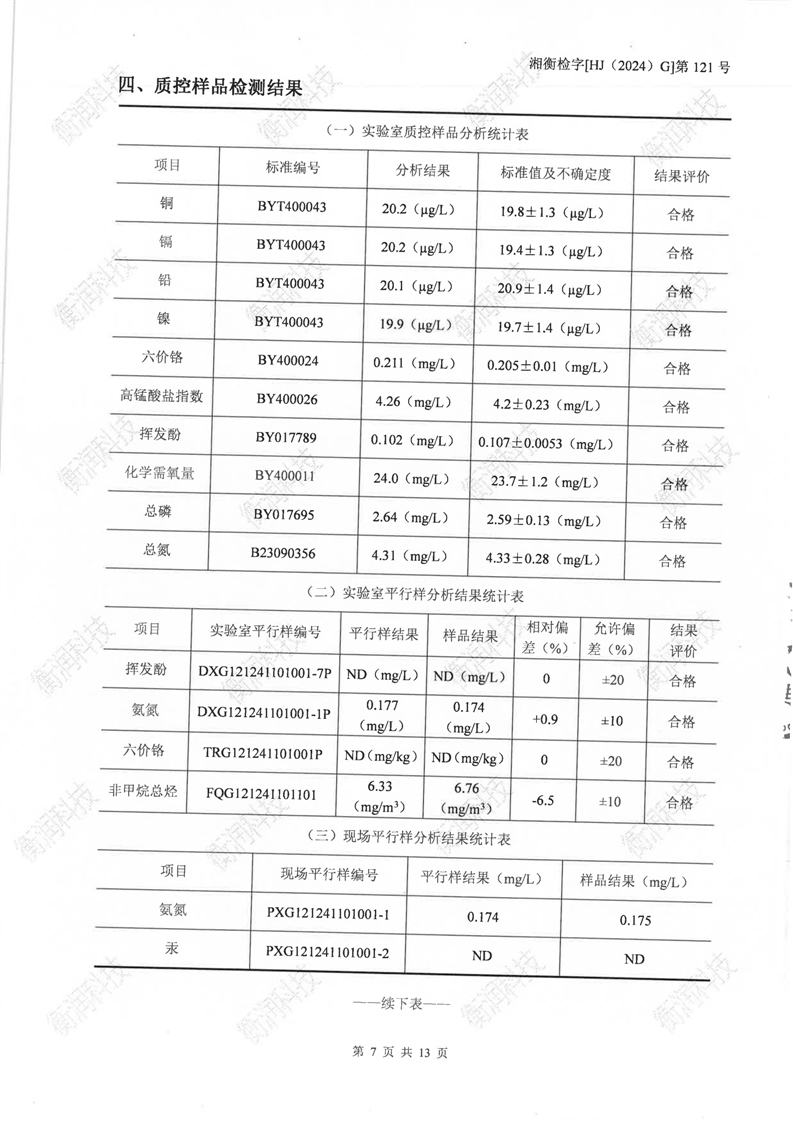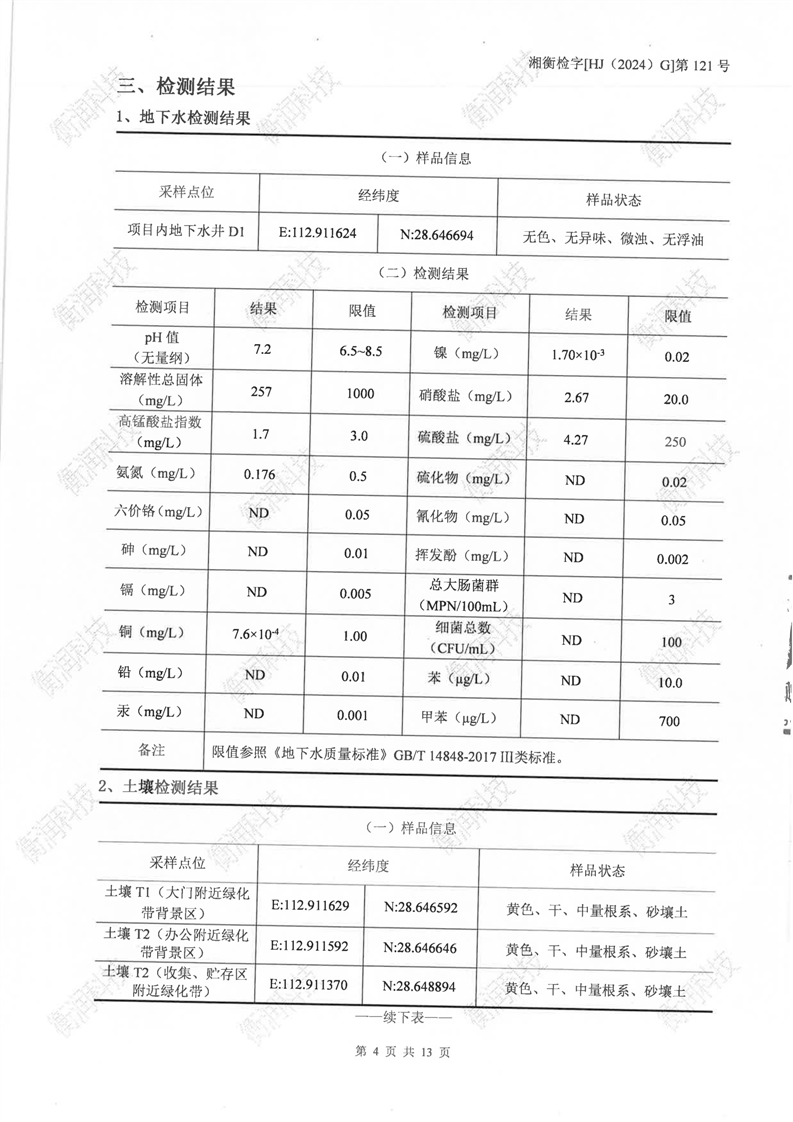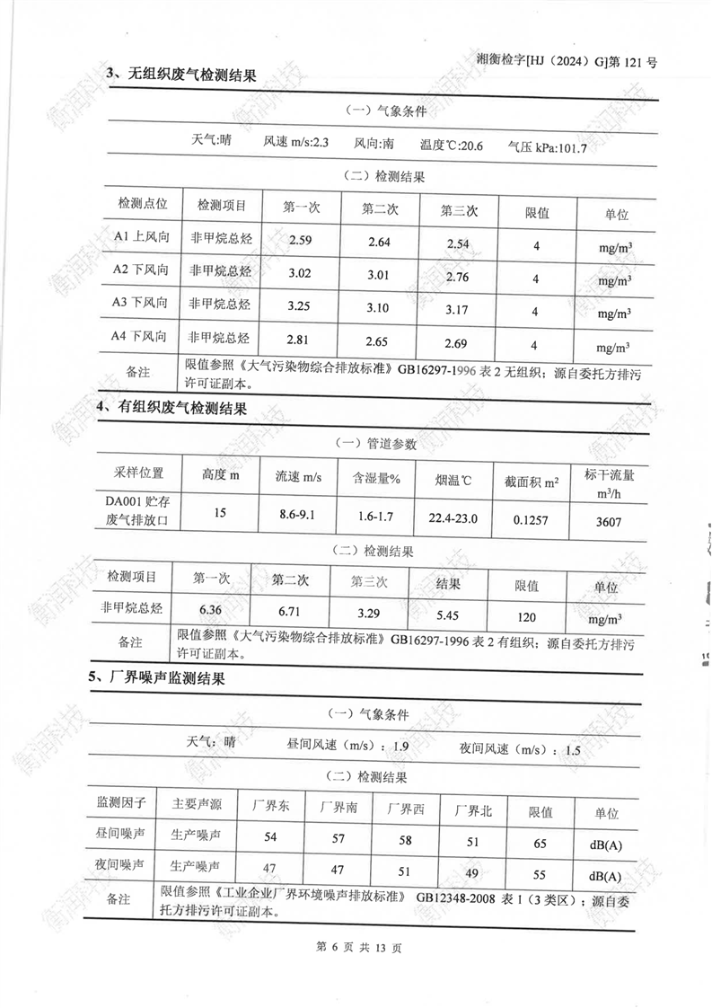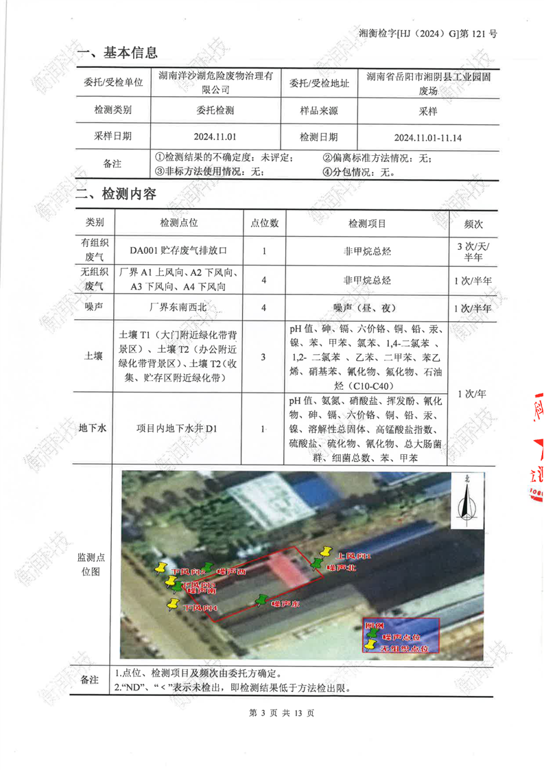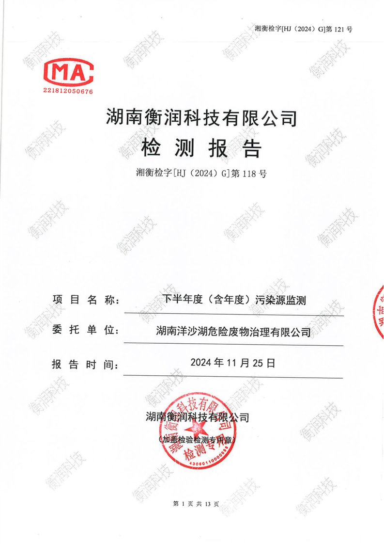 湖南洋沙湖危险废物治理有限公司2024年检测报告