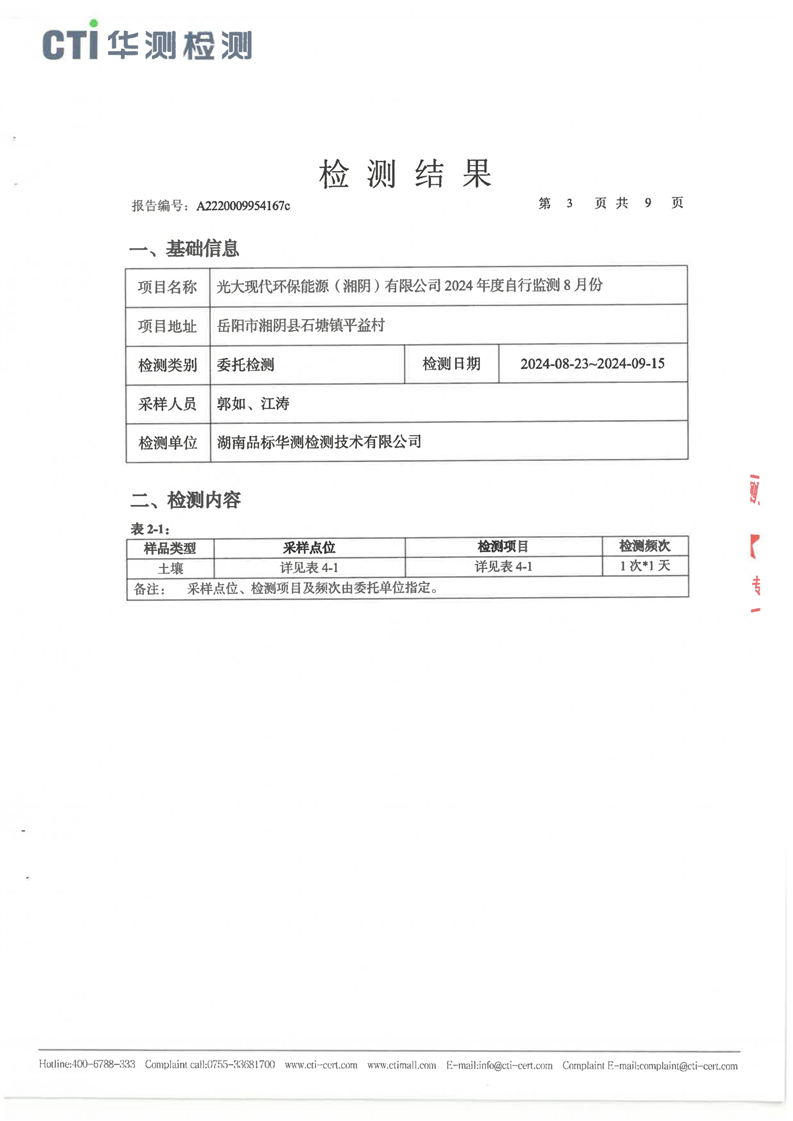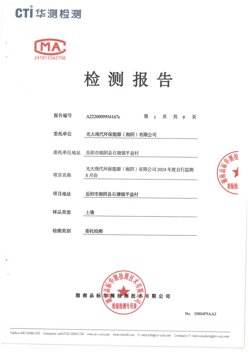光大现代环保能源(湘阴)有限公司2024年土壤检测报告