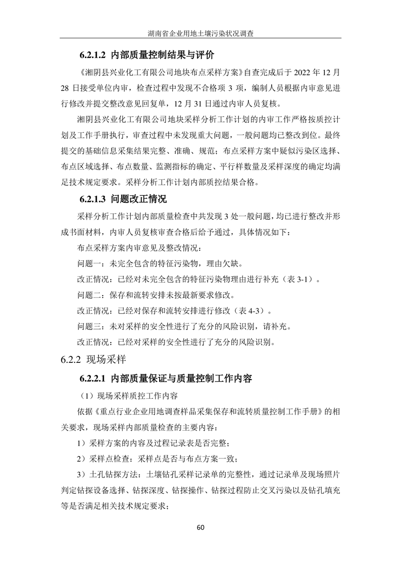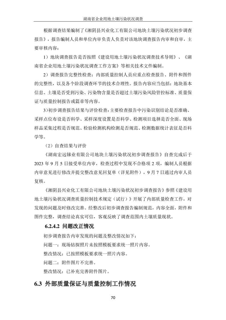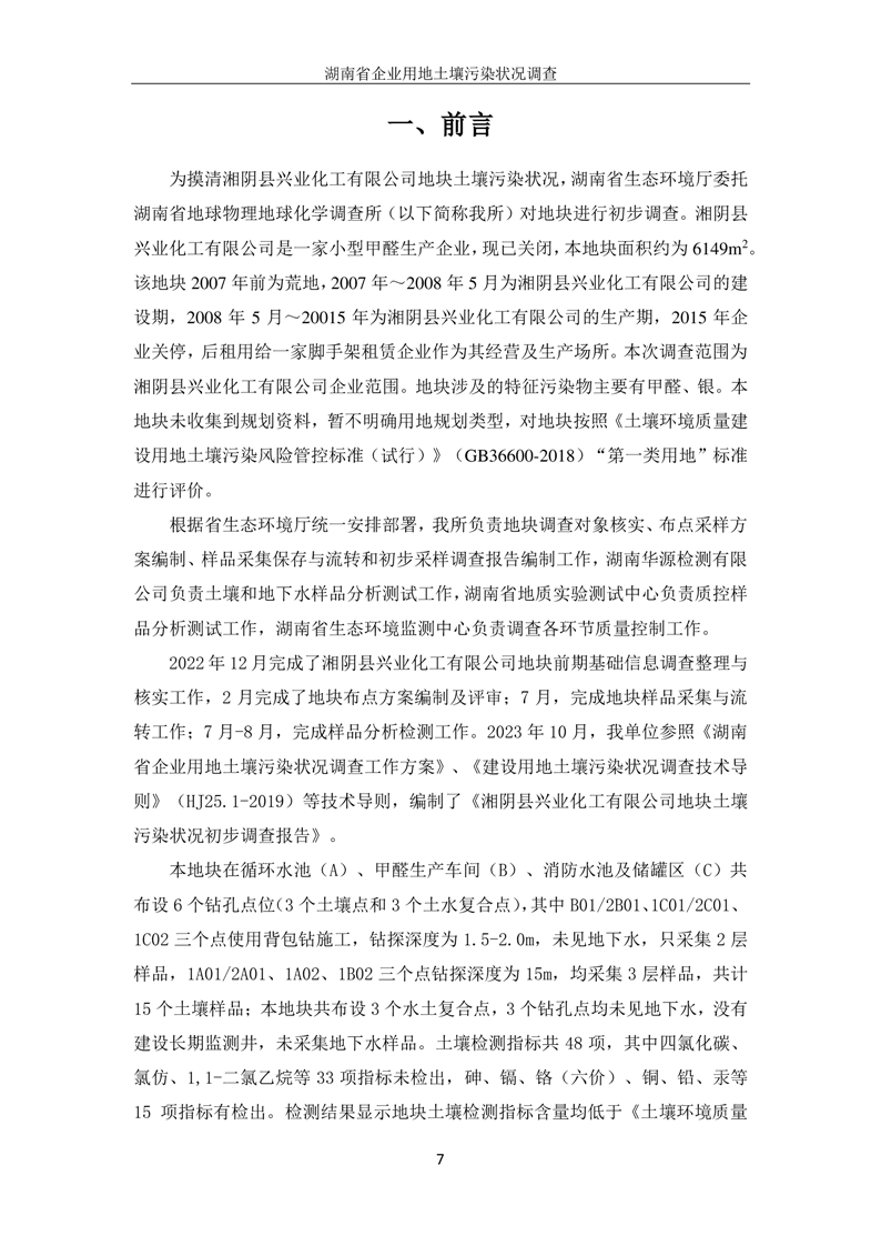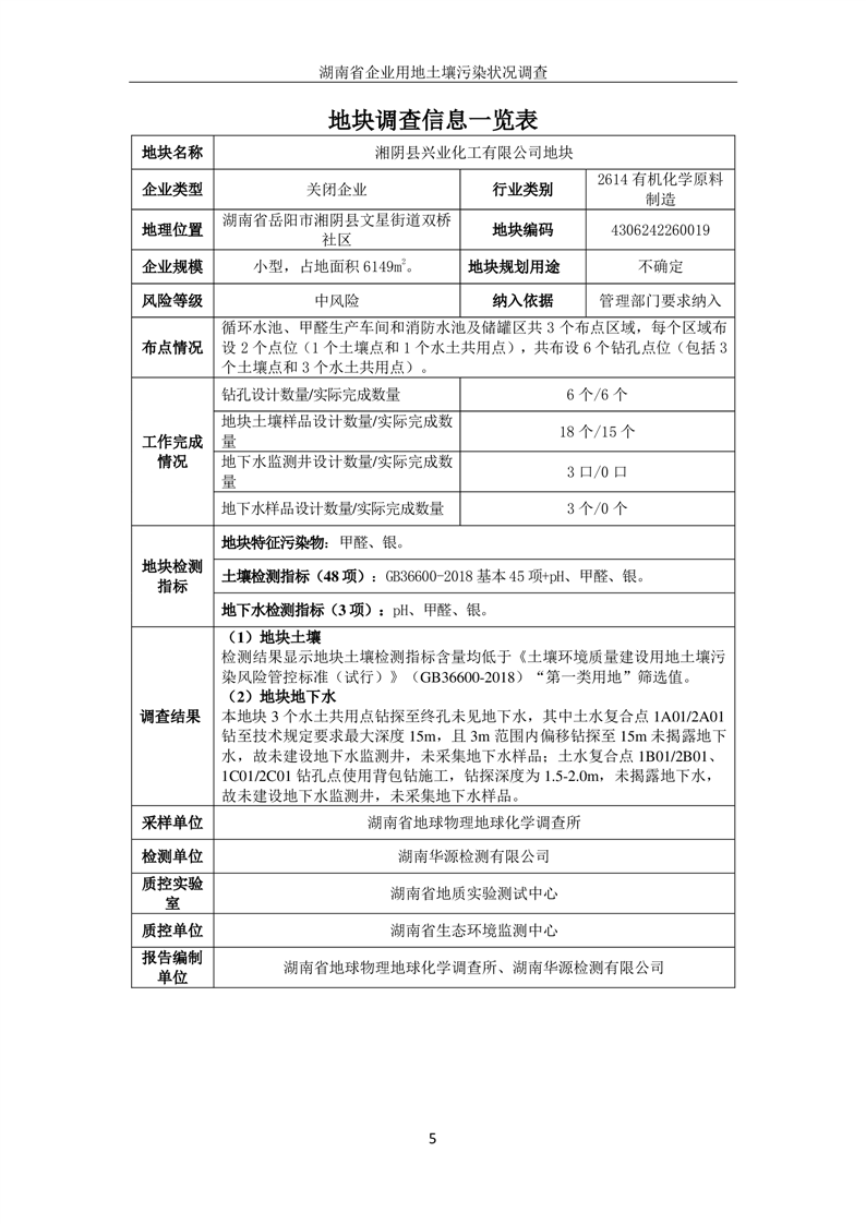 湘阴县兴业化工有限公司地块土壤污染状况初步调查报告