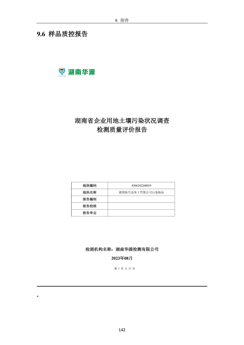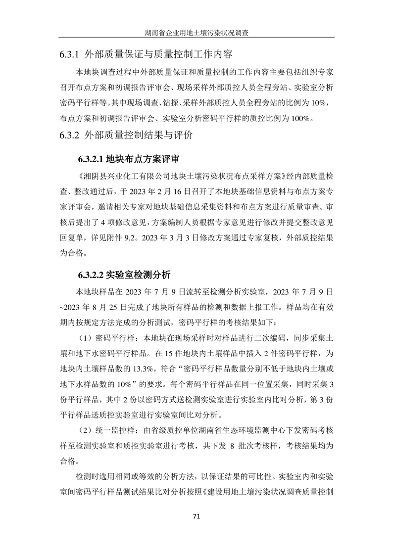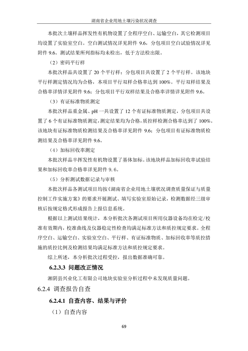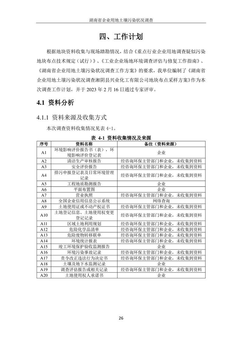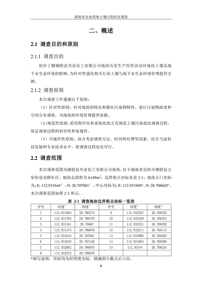 湘阴县兴业化工有限公司地块土壤污染状况初步调查报告