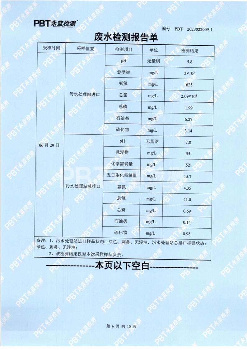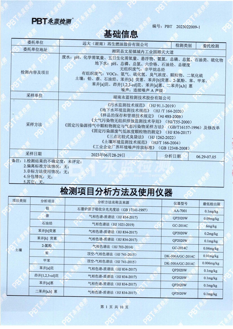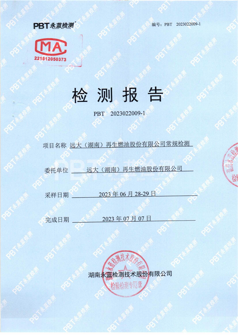 远大(湖南)再生燃油股份有限公司2023年检测报告