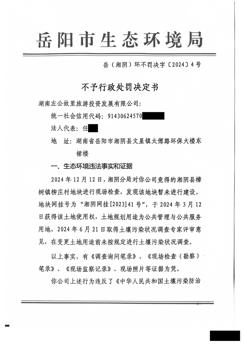 岳(湘阴)环不罚决字[2024]4号