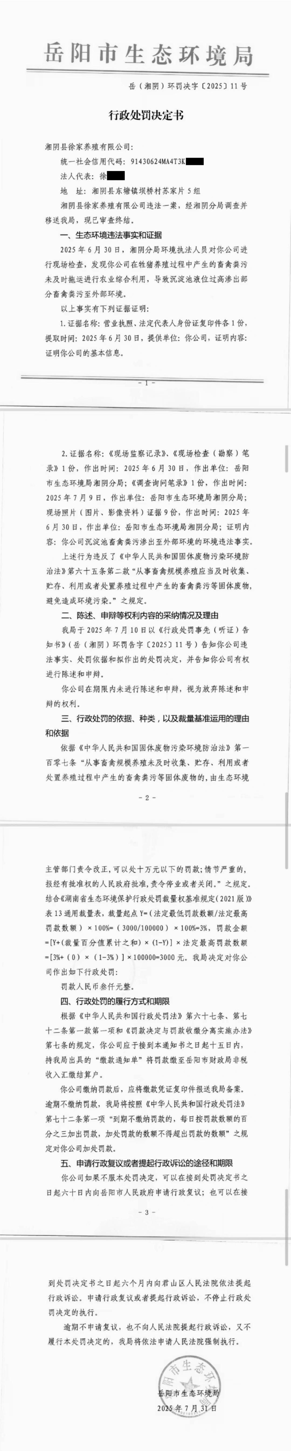 岳(湘阴)环罚决字[2025]11号