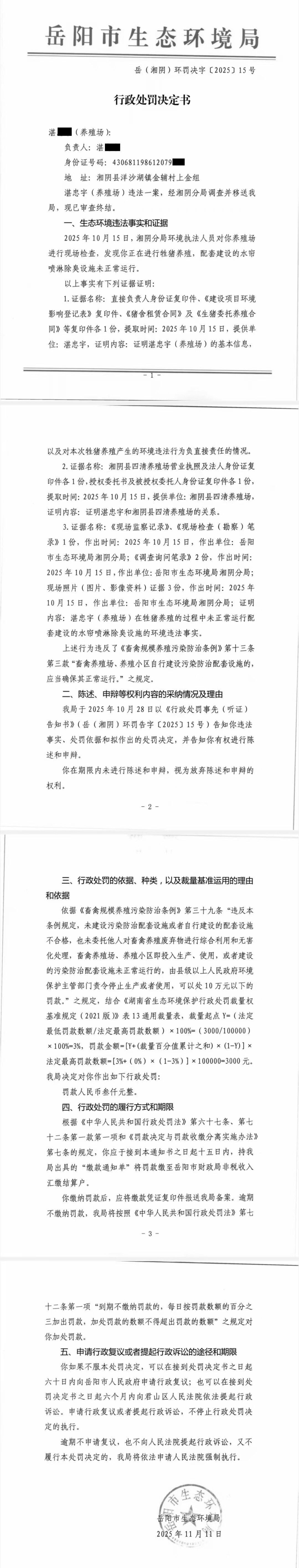 岳(湘阴)环罚决字[2025]15号
