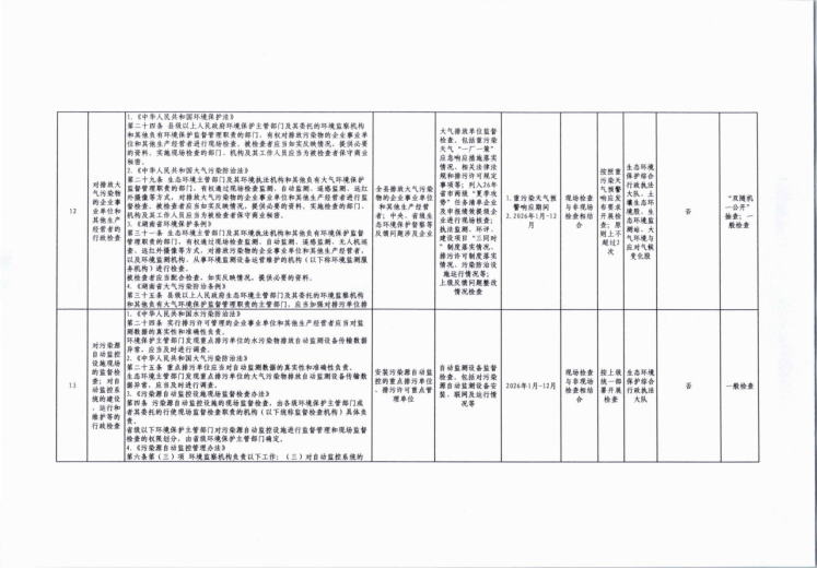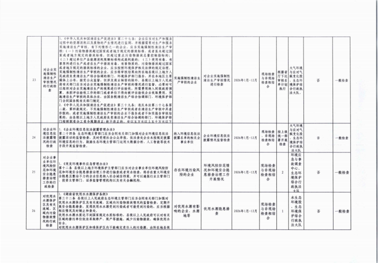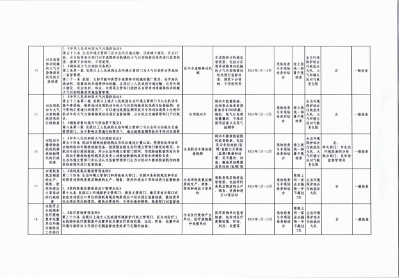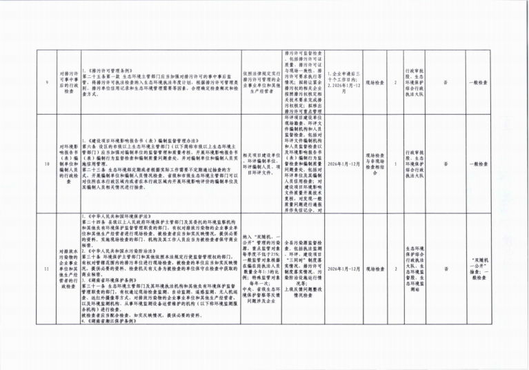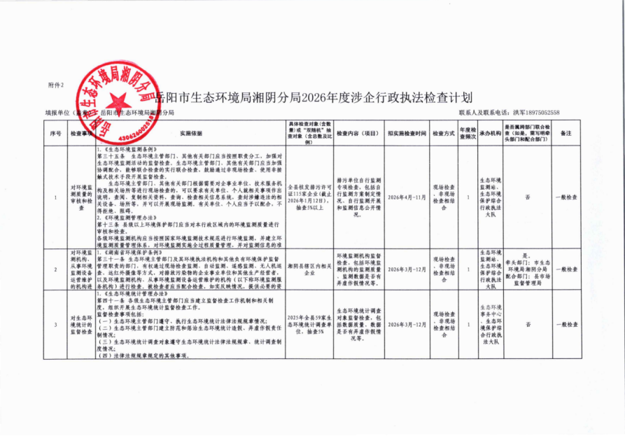 岳阳市生态环境局湘阴分局2026年度涉企行政检查计划