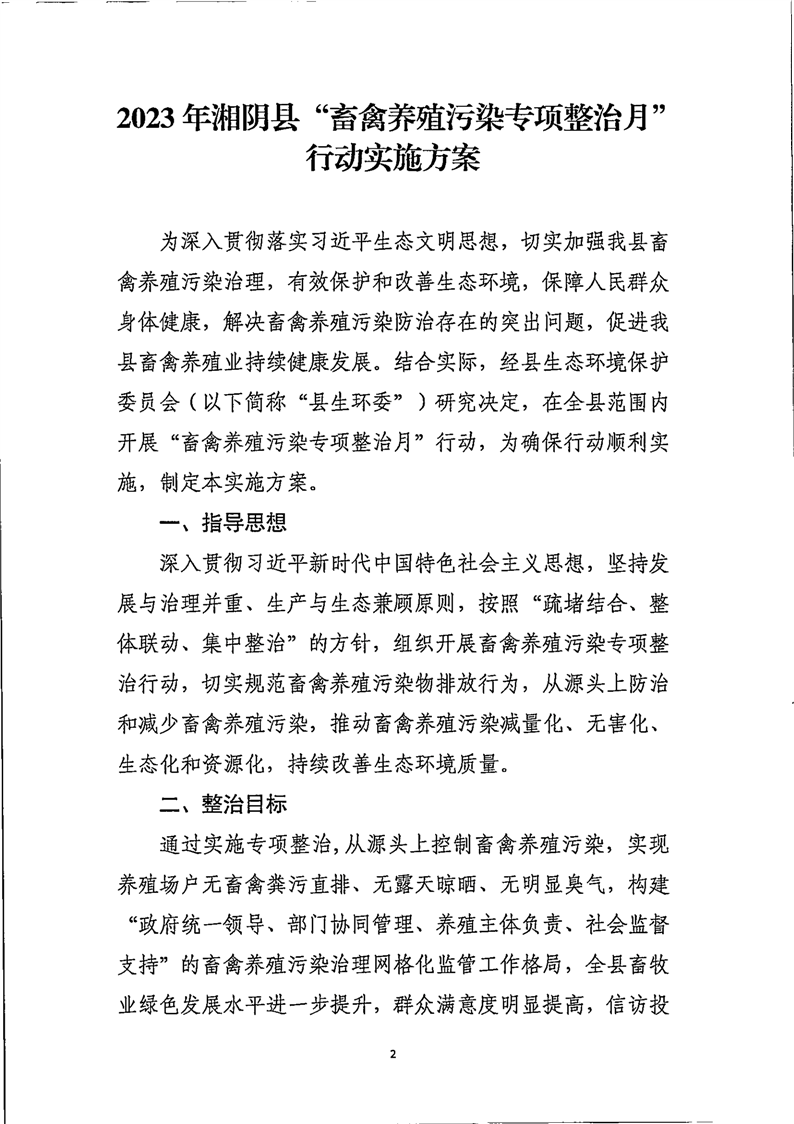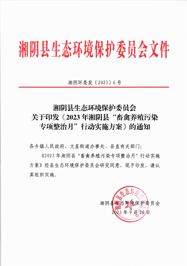 关于印发《2023年湘阴县“ 畜禽养殖污染专项整治月”行动实施方案》的通知